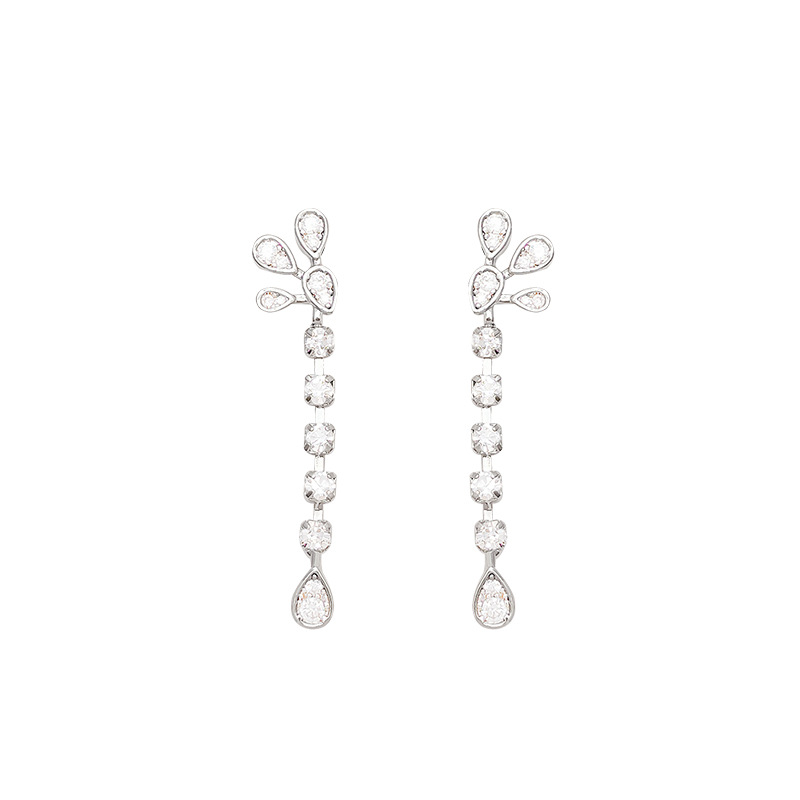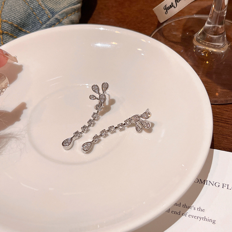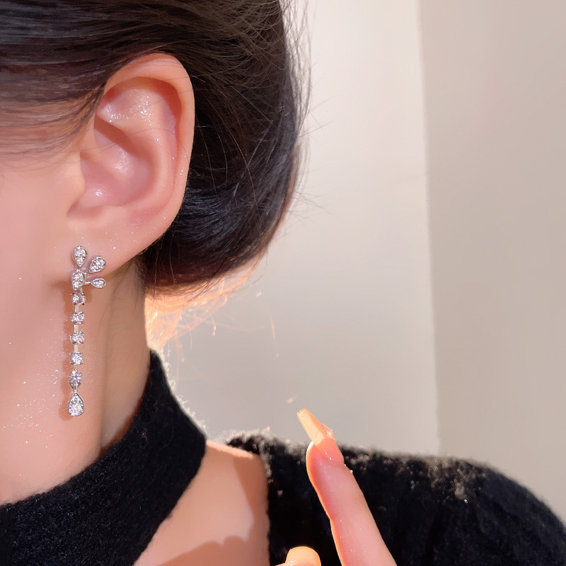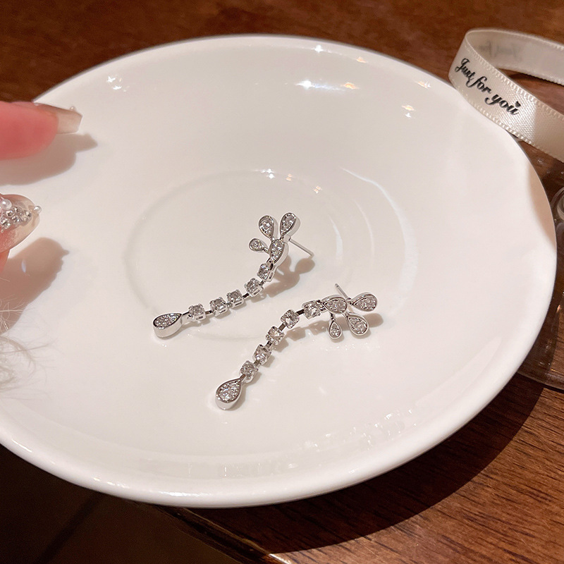 爆闪精致锆石长款流苏花朵耳环女轻奢小众高级感网红同款耳钉耳饰