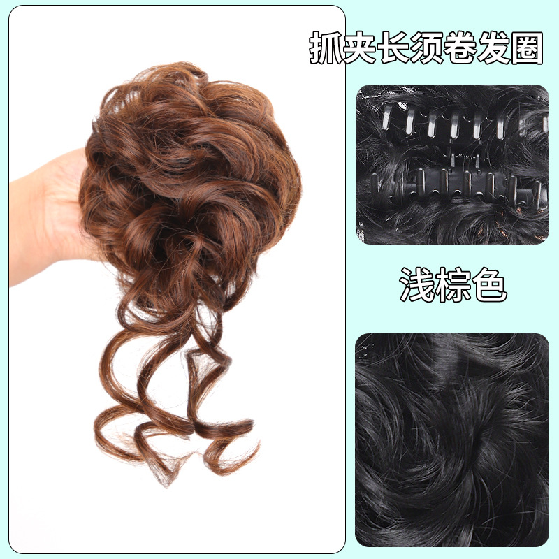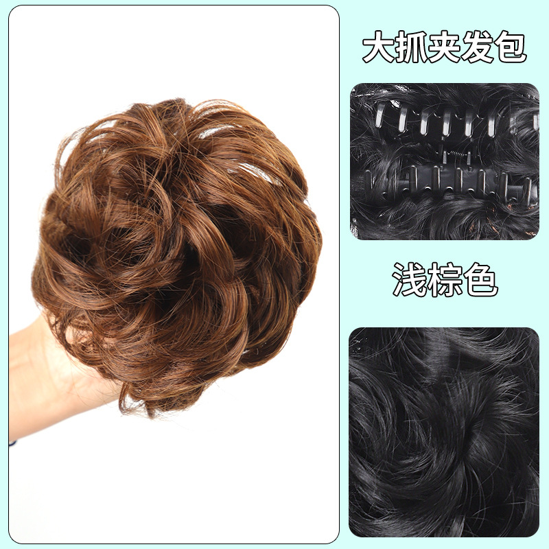 抓夹假发女丸子头长须卷发包花苞头半丸子新娘发饰蓬松自然盘发器