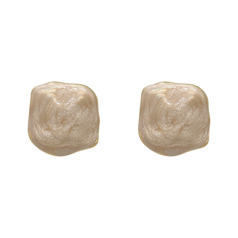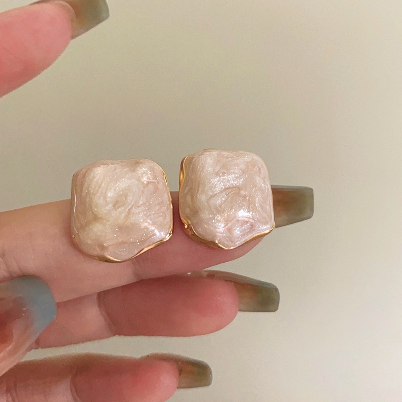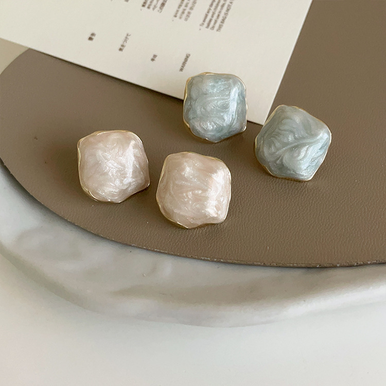 S925银针轻奢小众不规则耳环女高级感滴釉纹理方形耳钉耳饰品批发