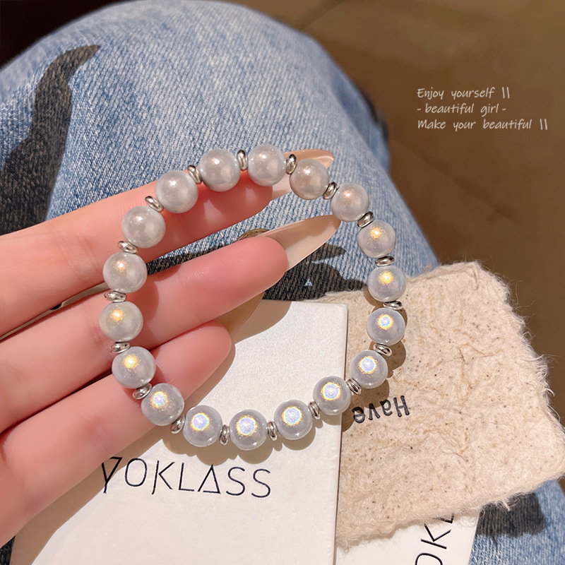 韩系甜美流光贝珠手串反光高级感手链轻奢小众百搭气质手饰品批发