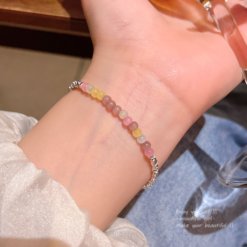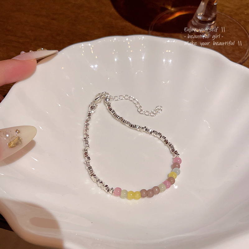 多巴胺甜美彩色串珠手串轻奢小众高级感超闪碎银几两手链女手饰品