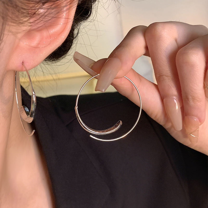 韩系爆款金属感冷淡风素圈耳环女夸张百搭气质大圆圈耳钉网红耳饰