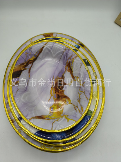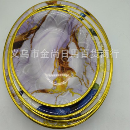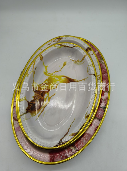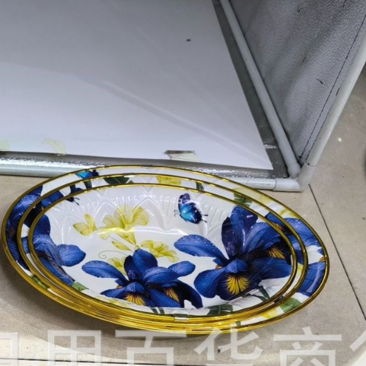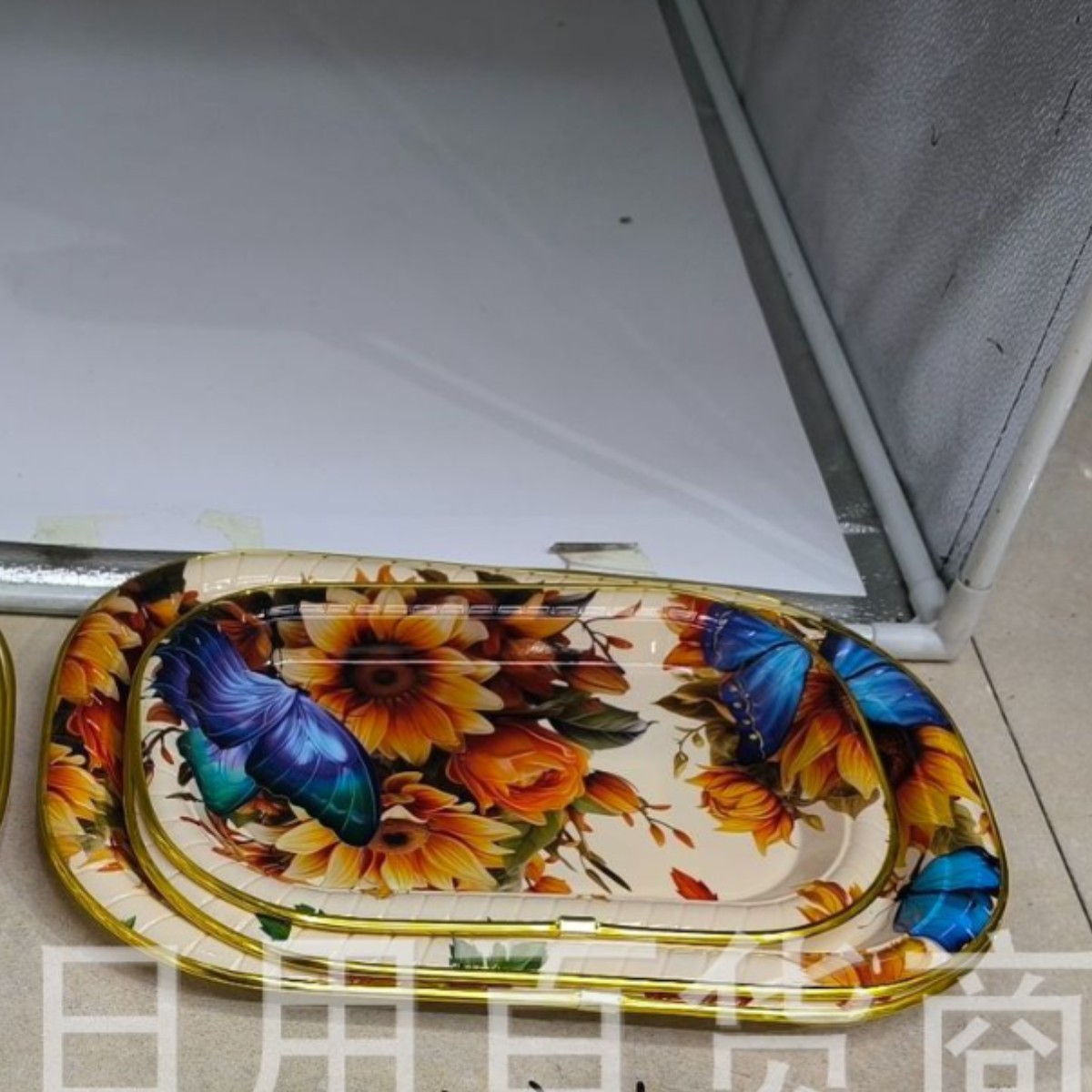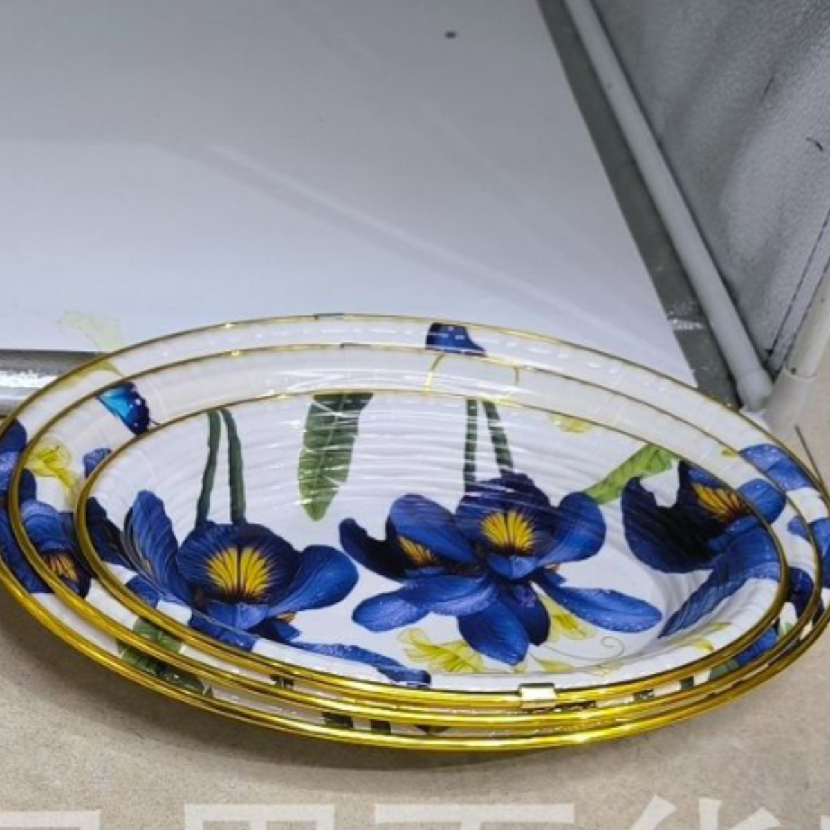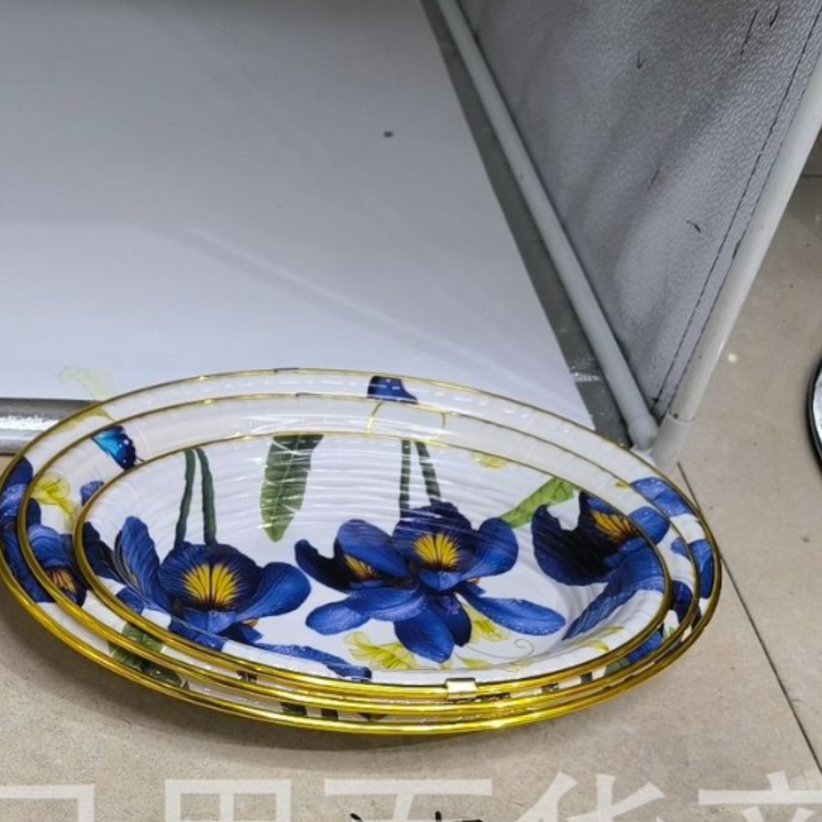 家用多款图案包金边水果盘批发大中小号椭圆形花纸果盘