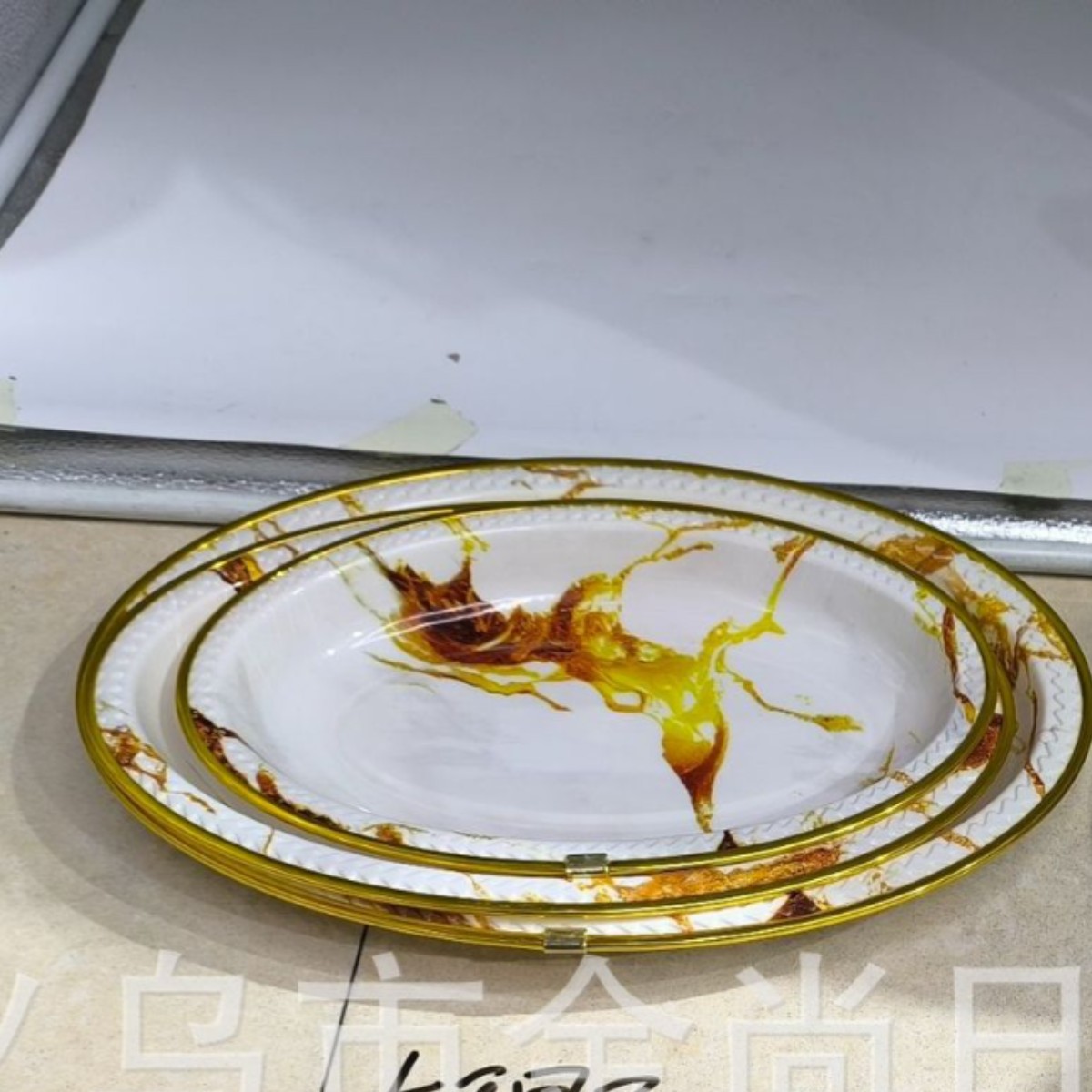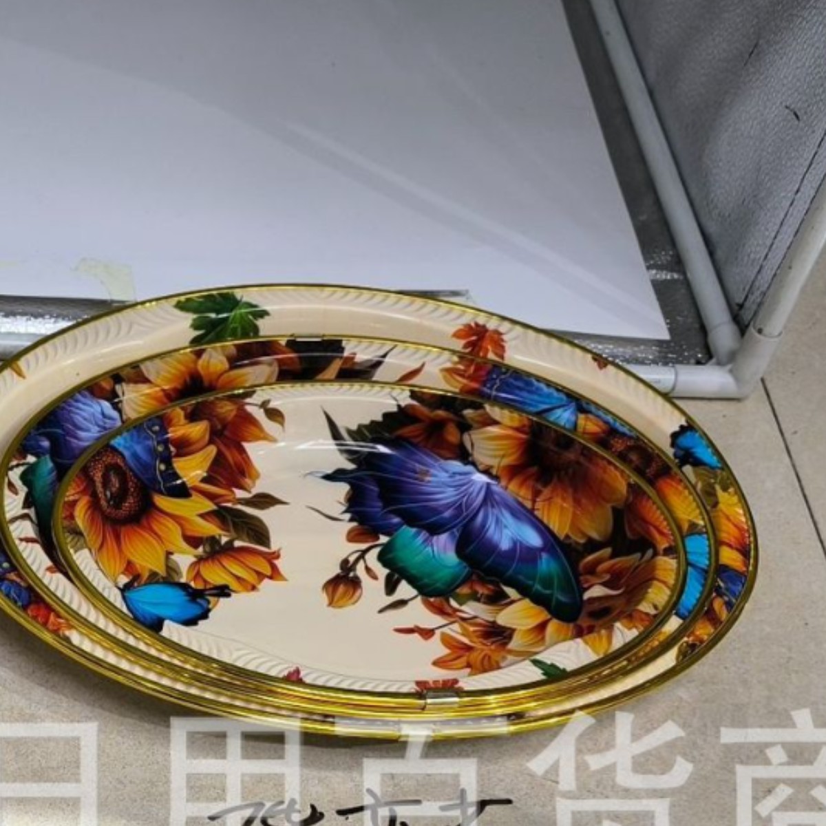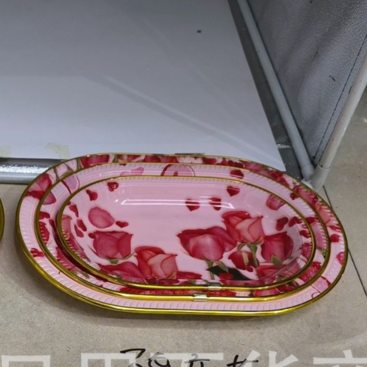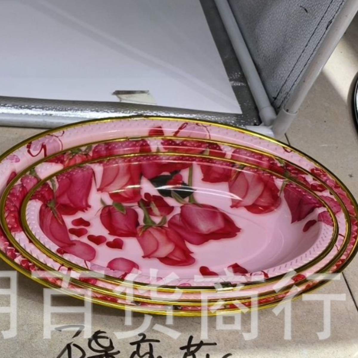 家用多款图案包金边水果盘批发大中小号椭圆形花纸果盘