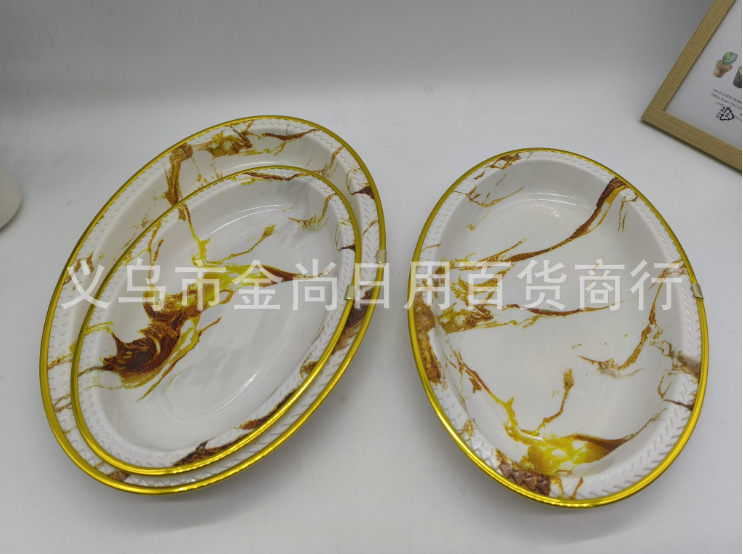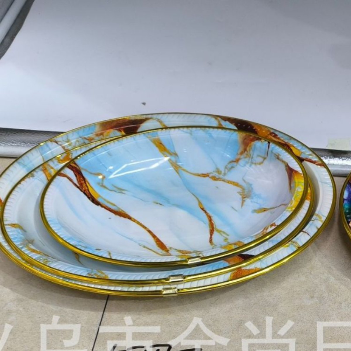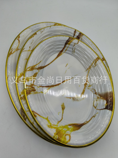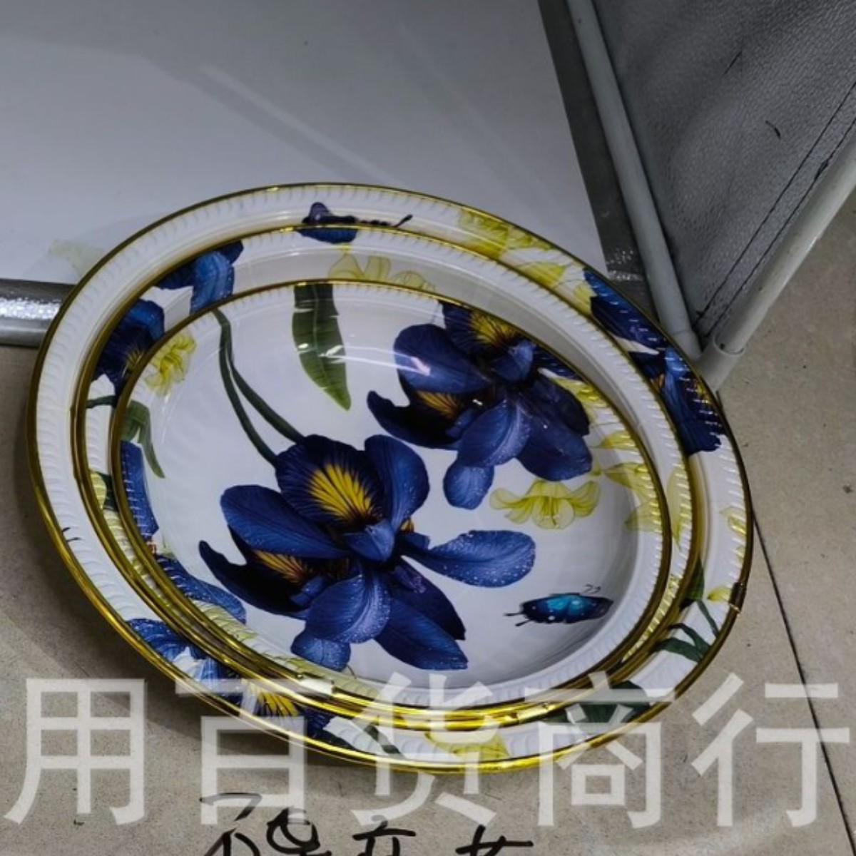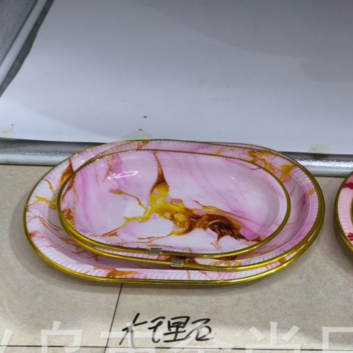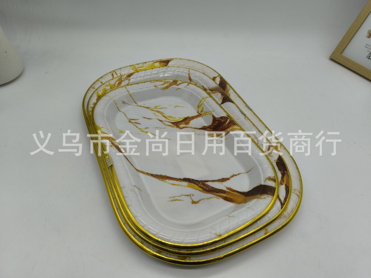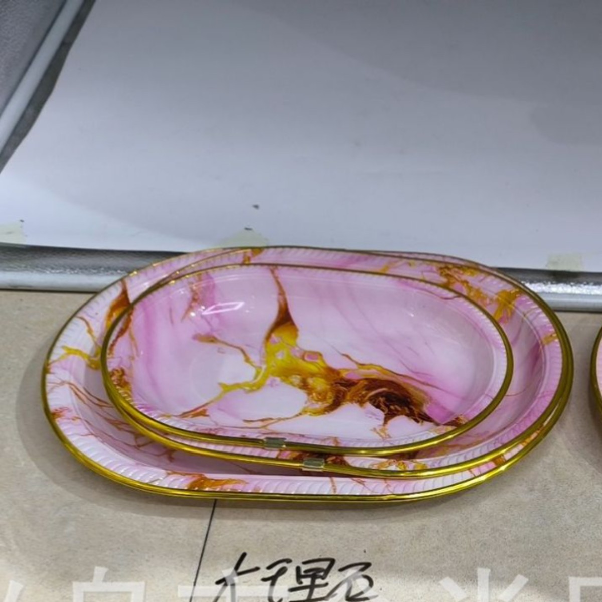 家用多款图案包金边水果盘批发大中小号椭圆形花纸果盘