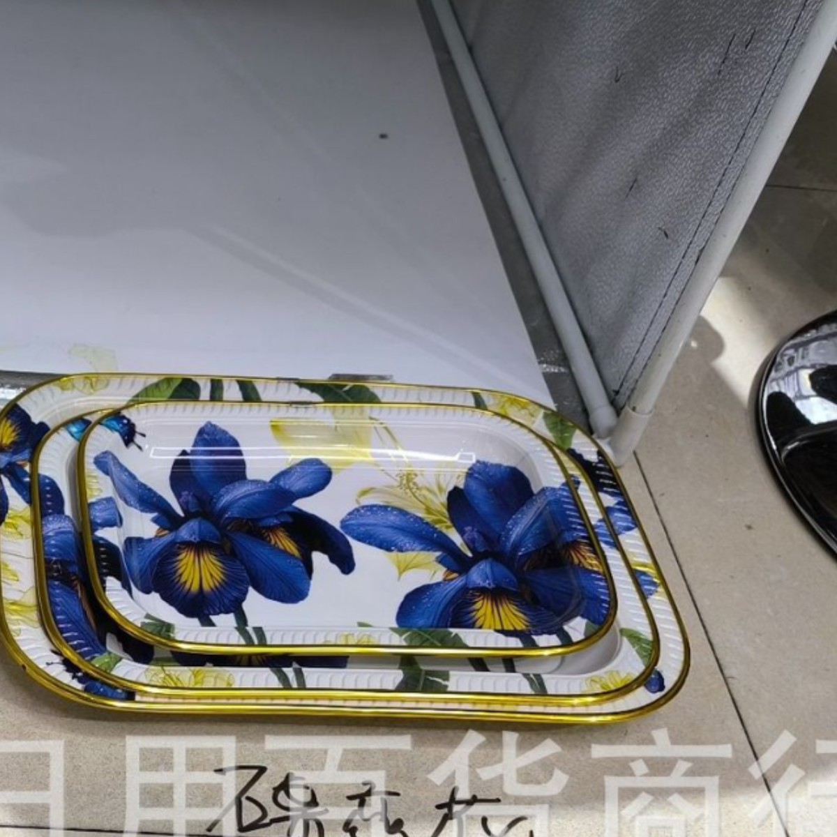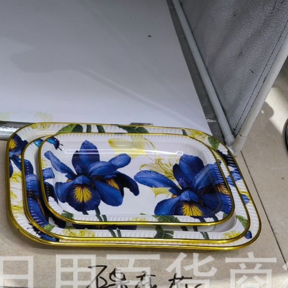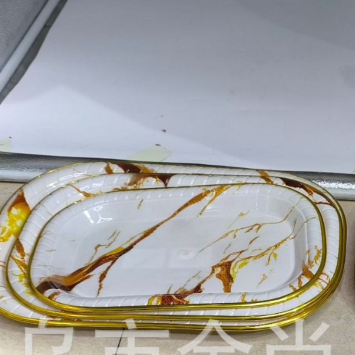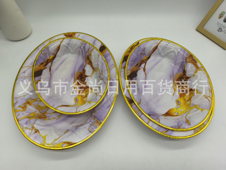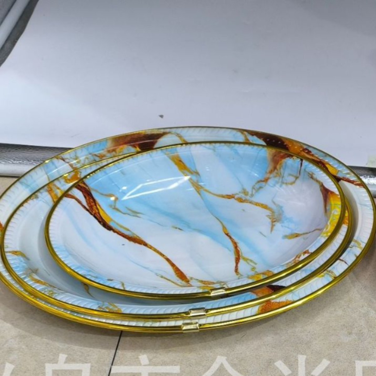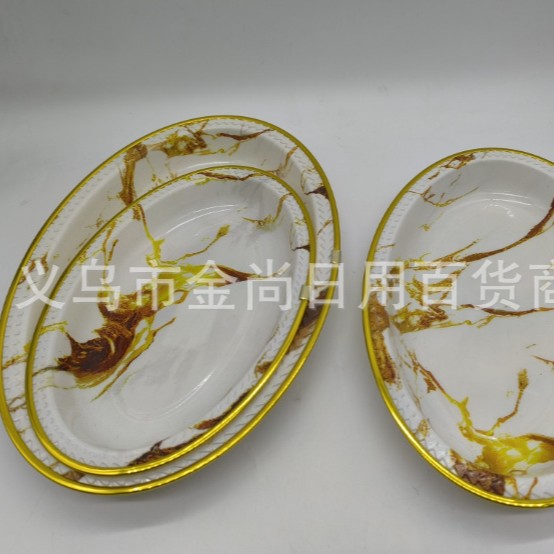 家用多款图案包金边水果盘批发大中小号椭圆形花纸果盘