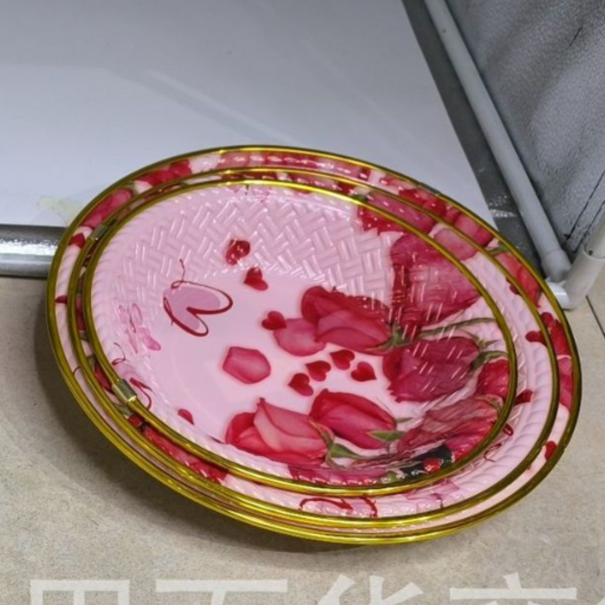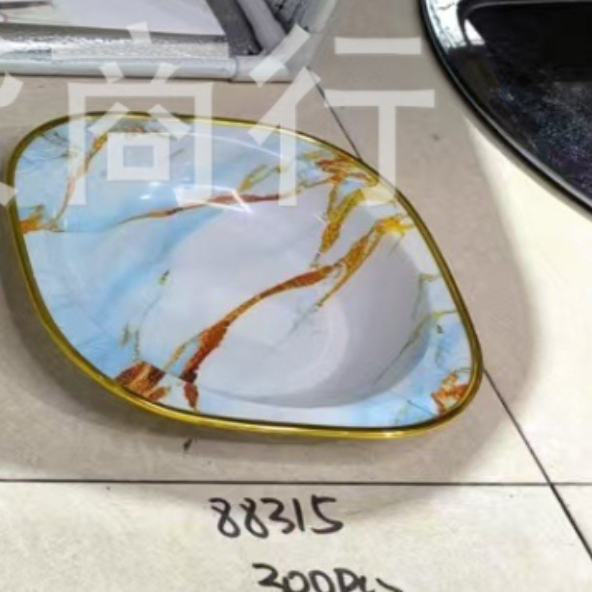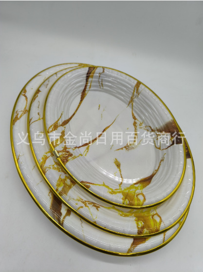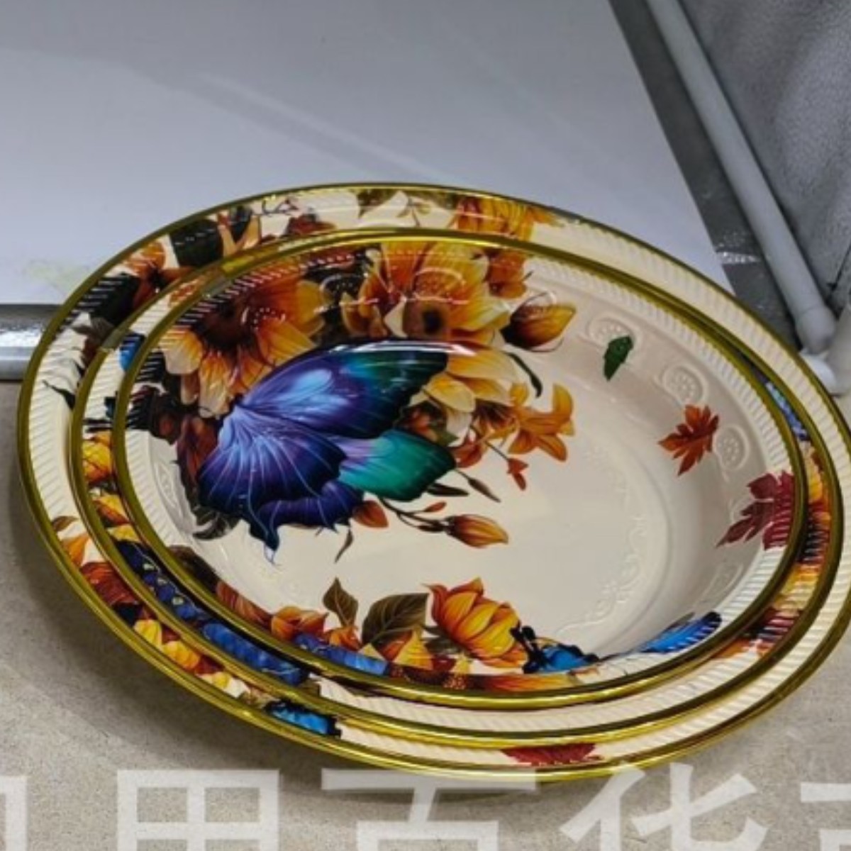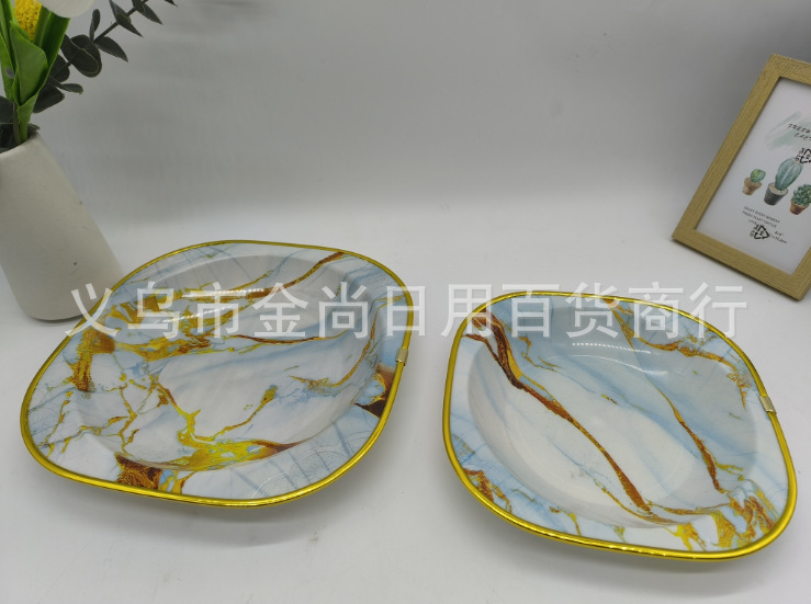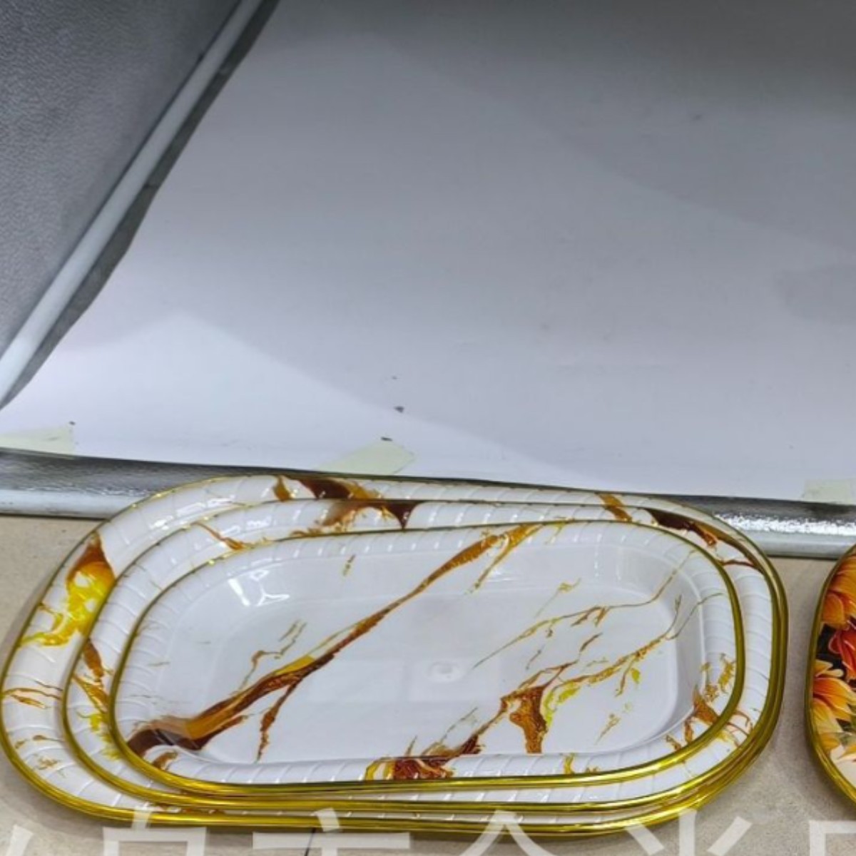 家用多款图案包金边水果盘批发大中小号椭圆形花纸果盘