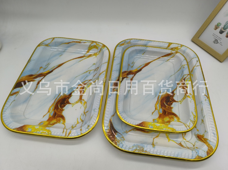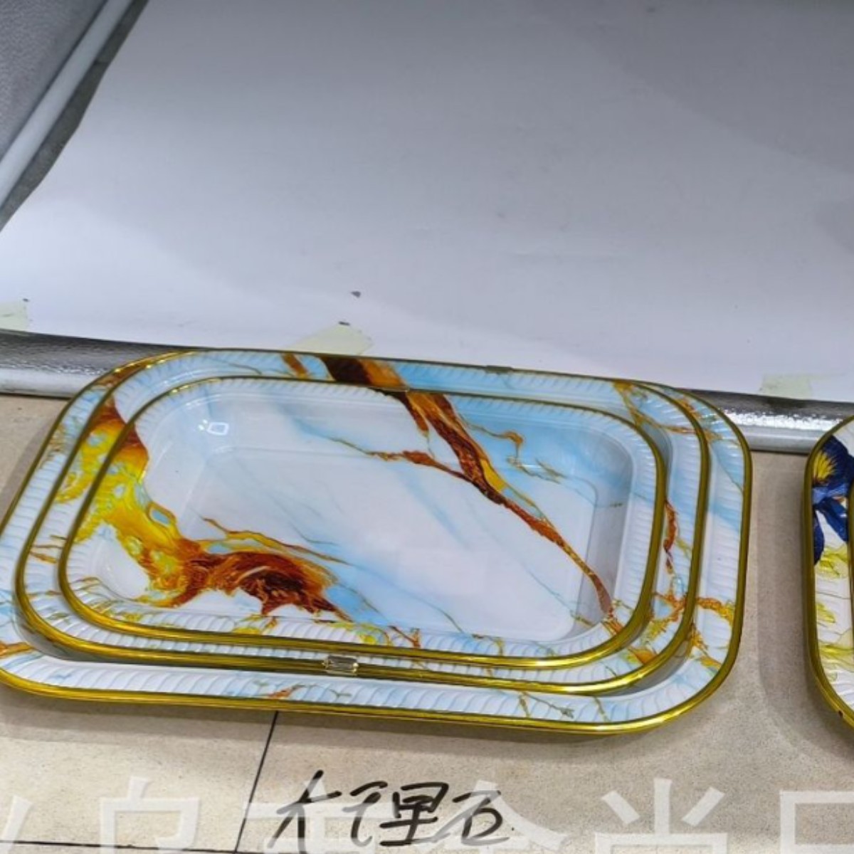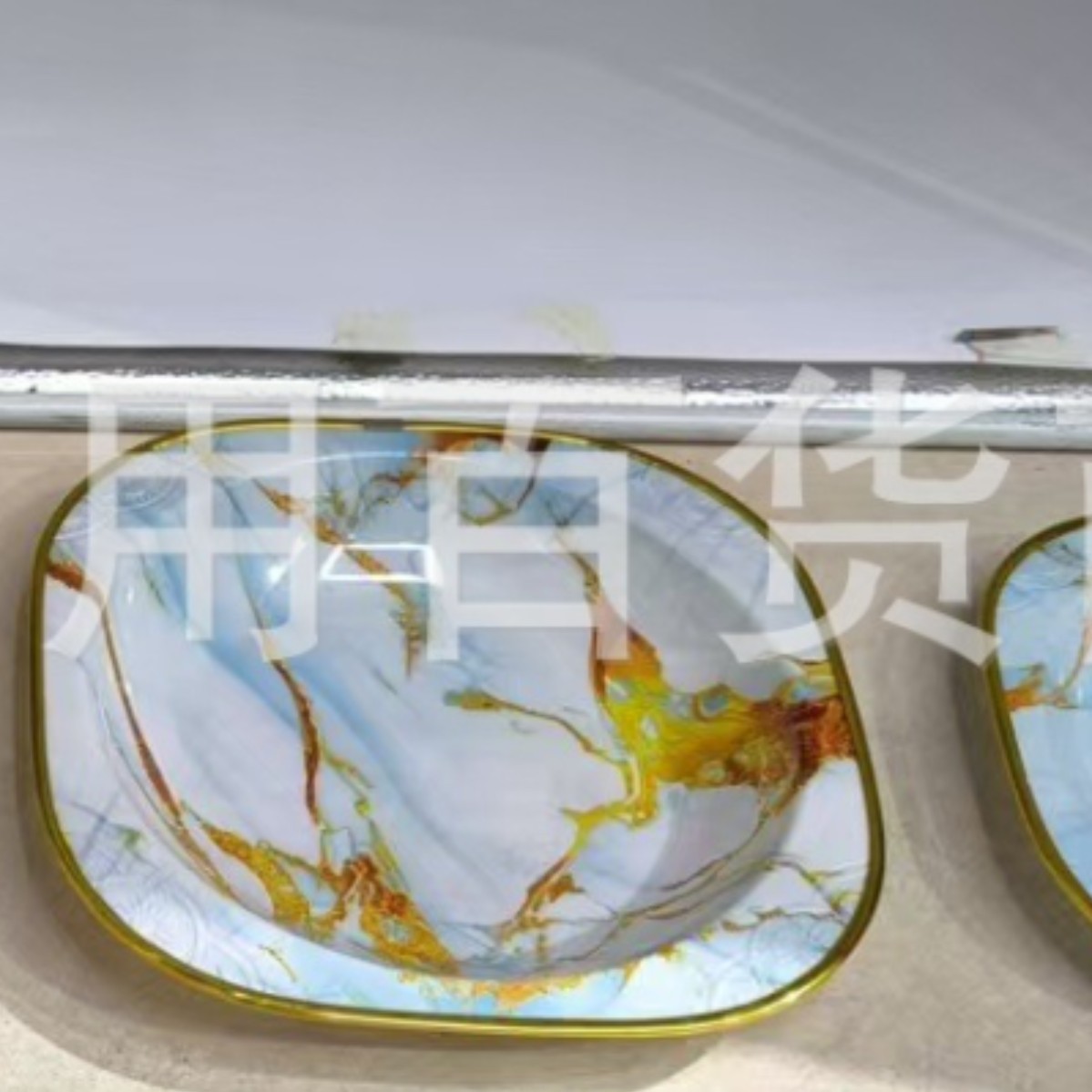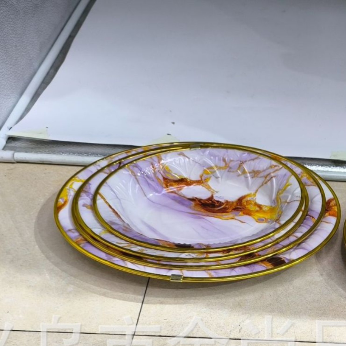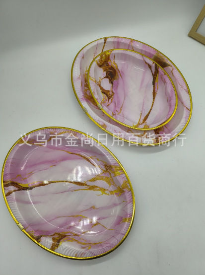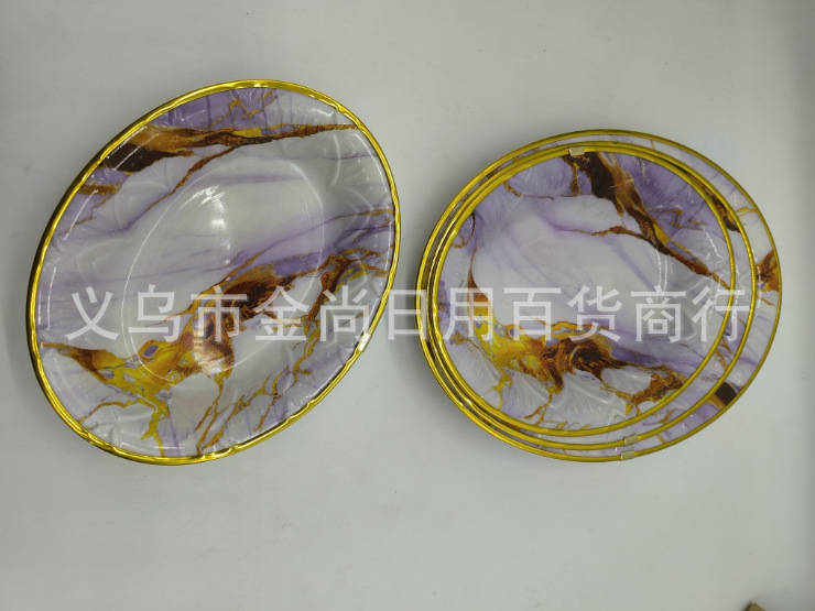 家用多款图案包金边水果盘批发大中小号椭圆形花纸果盘