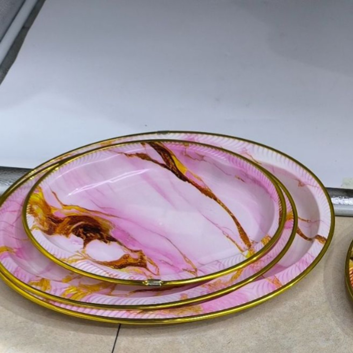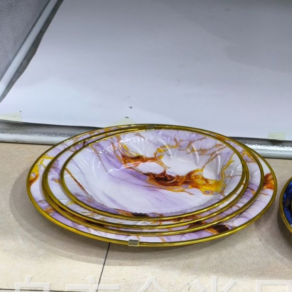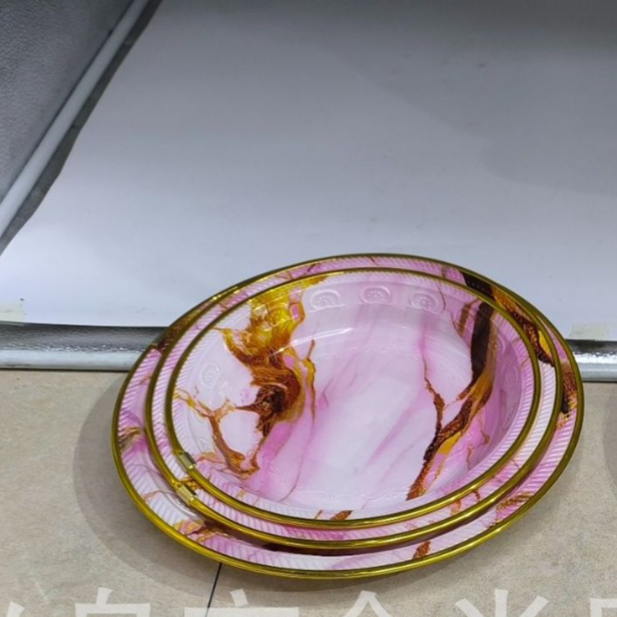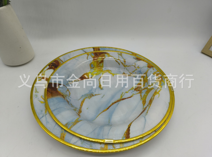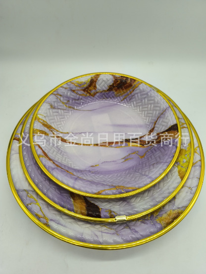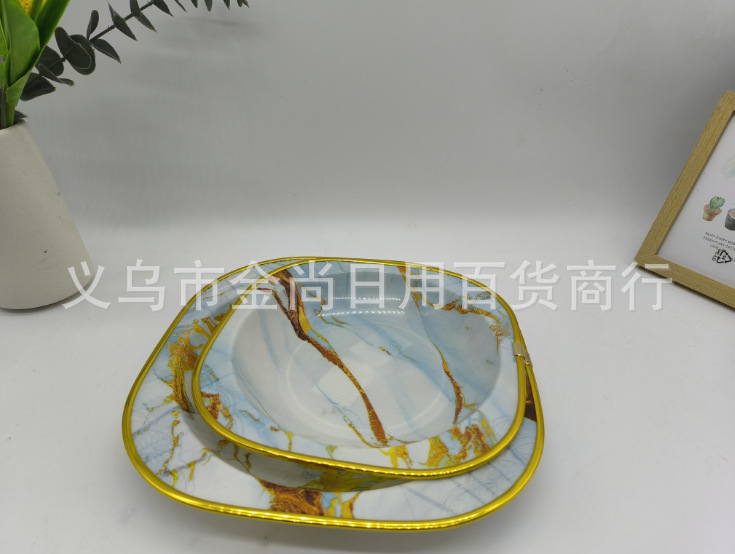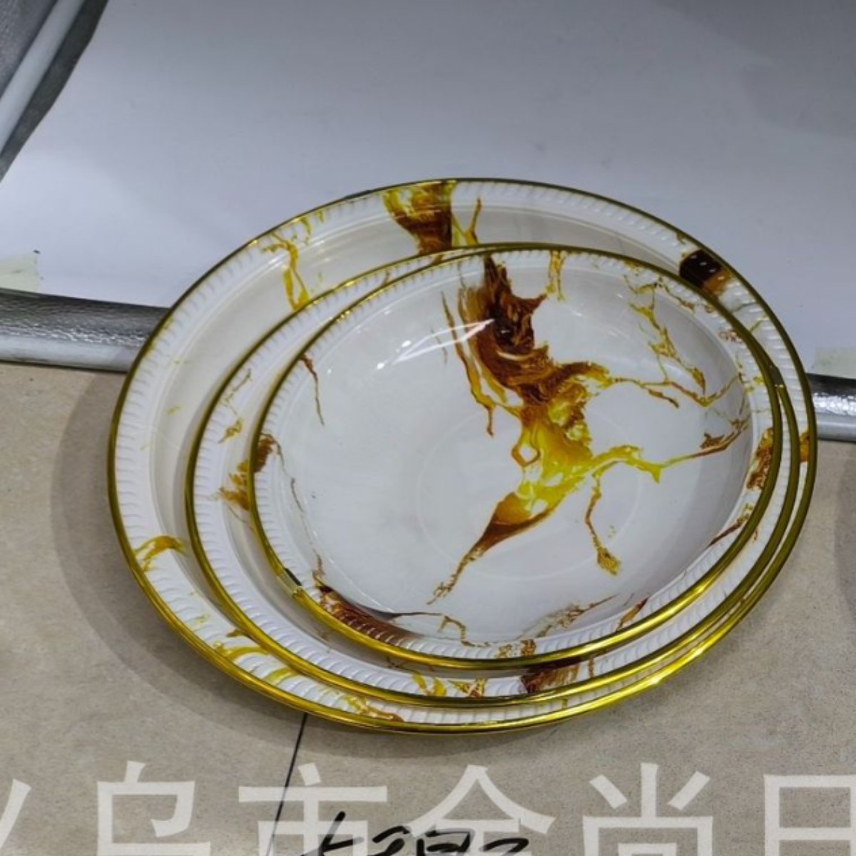 家用多款图案包金边水果盘批发大中小号椭圆形花纸果盘