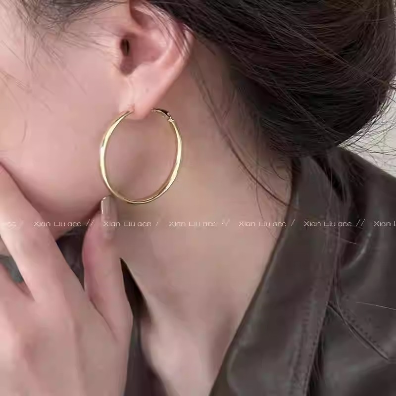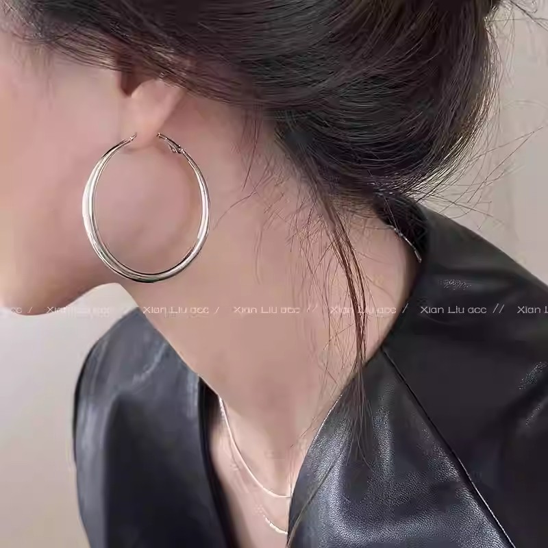 欧美夸张经典款大圆圈耳环女超闪亮面几何形耳圈轻奢小众耳钉耳饰