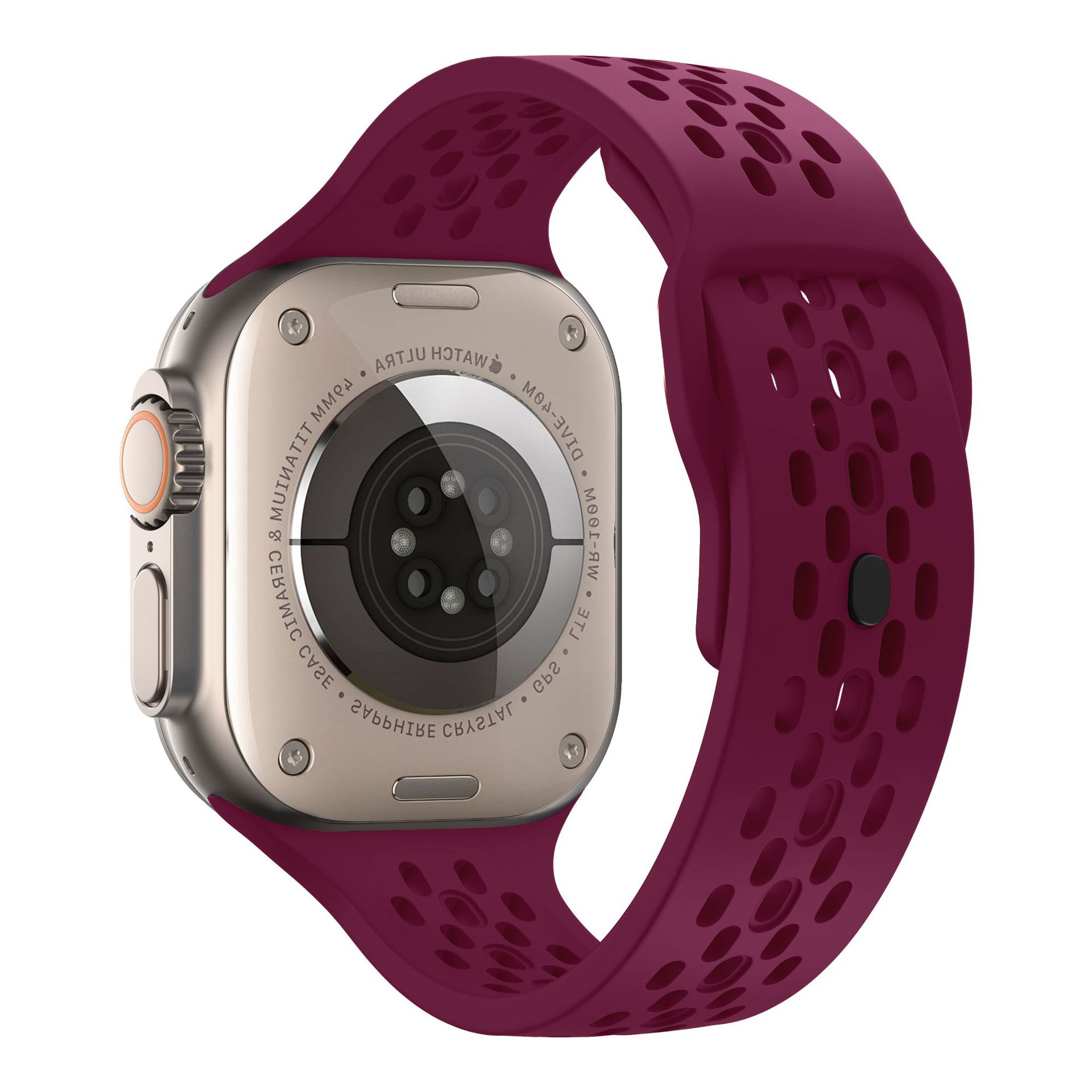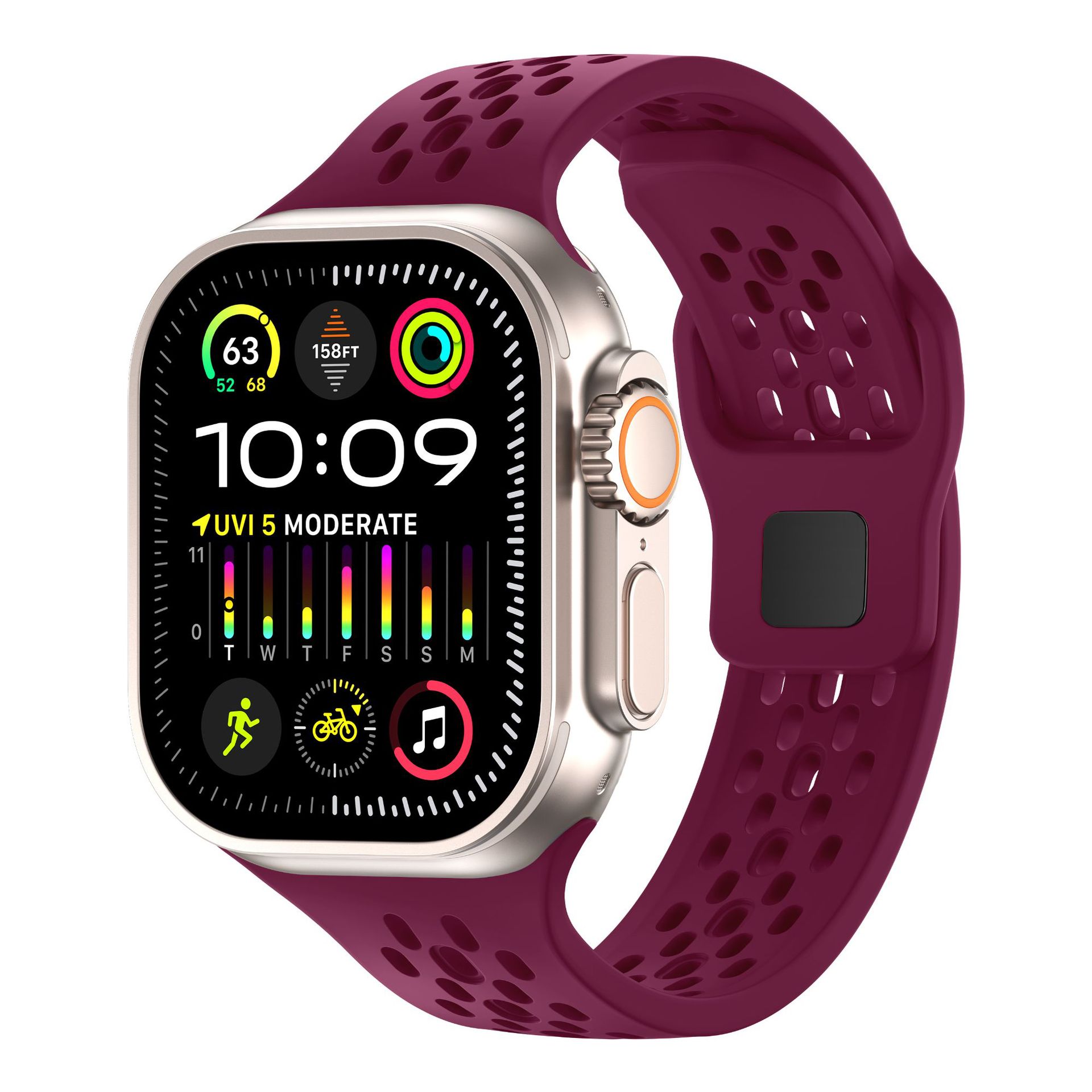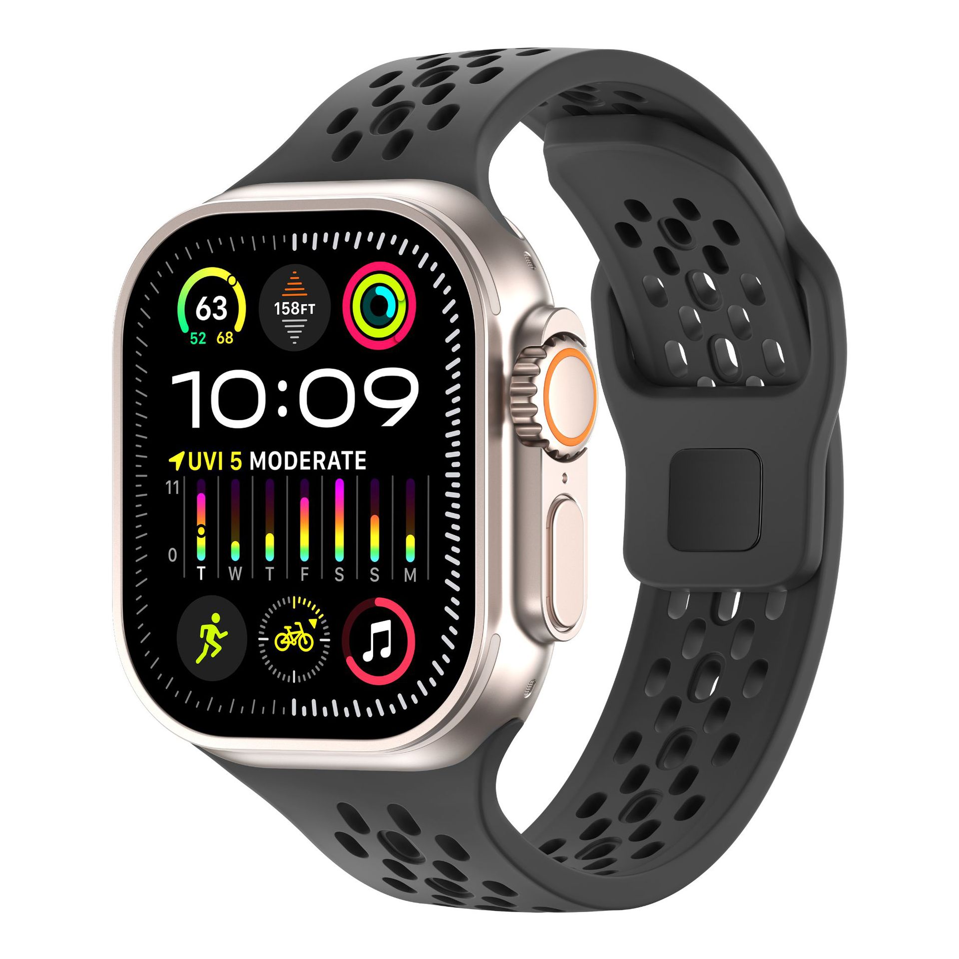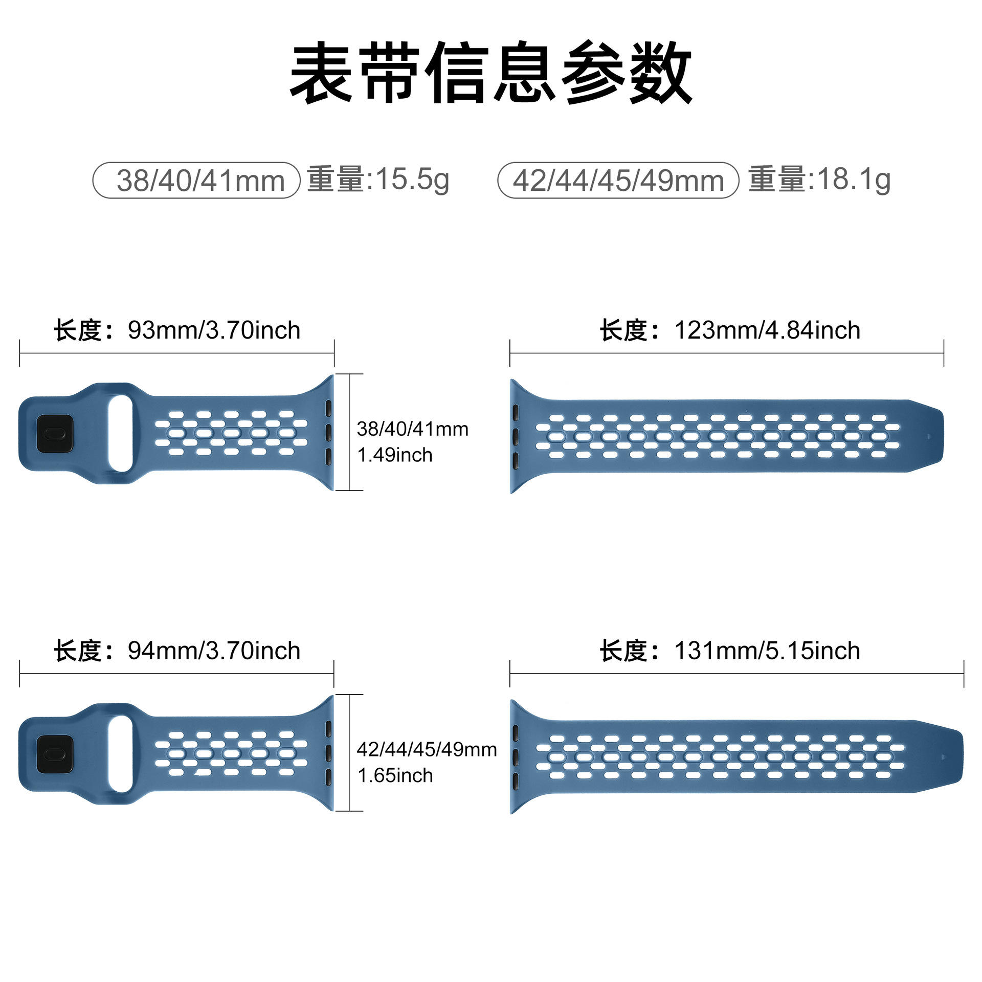 工厂直销适用于苹果表带洞洞透气网孔硅胶表带反扣单色iwatch表带