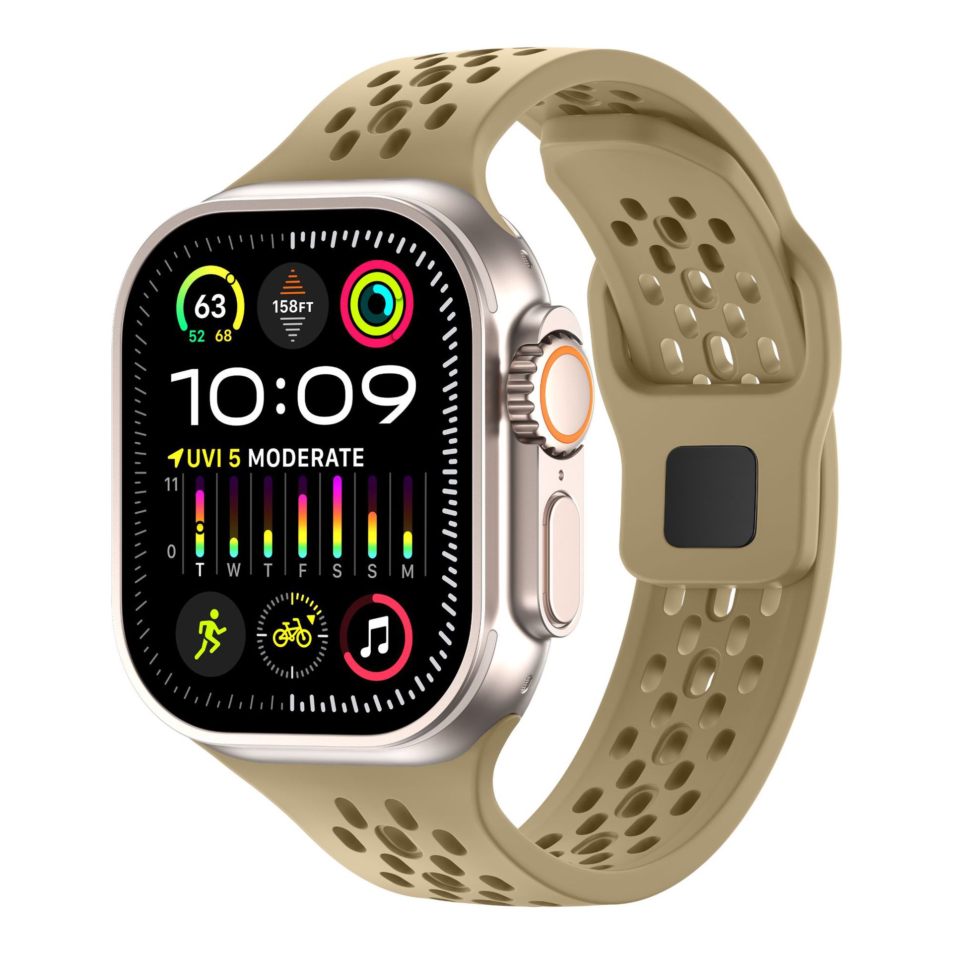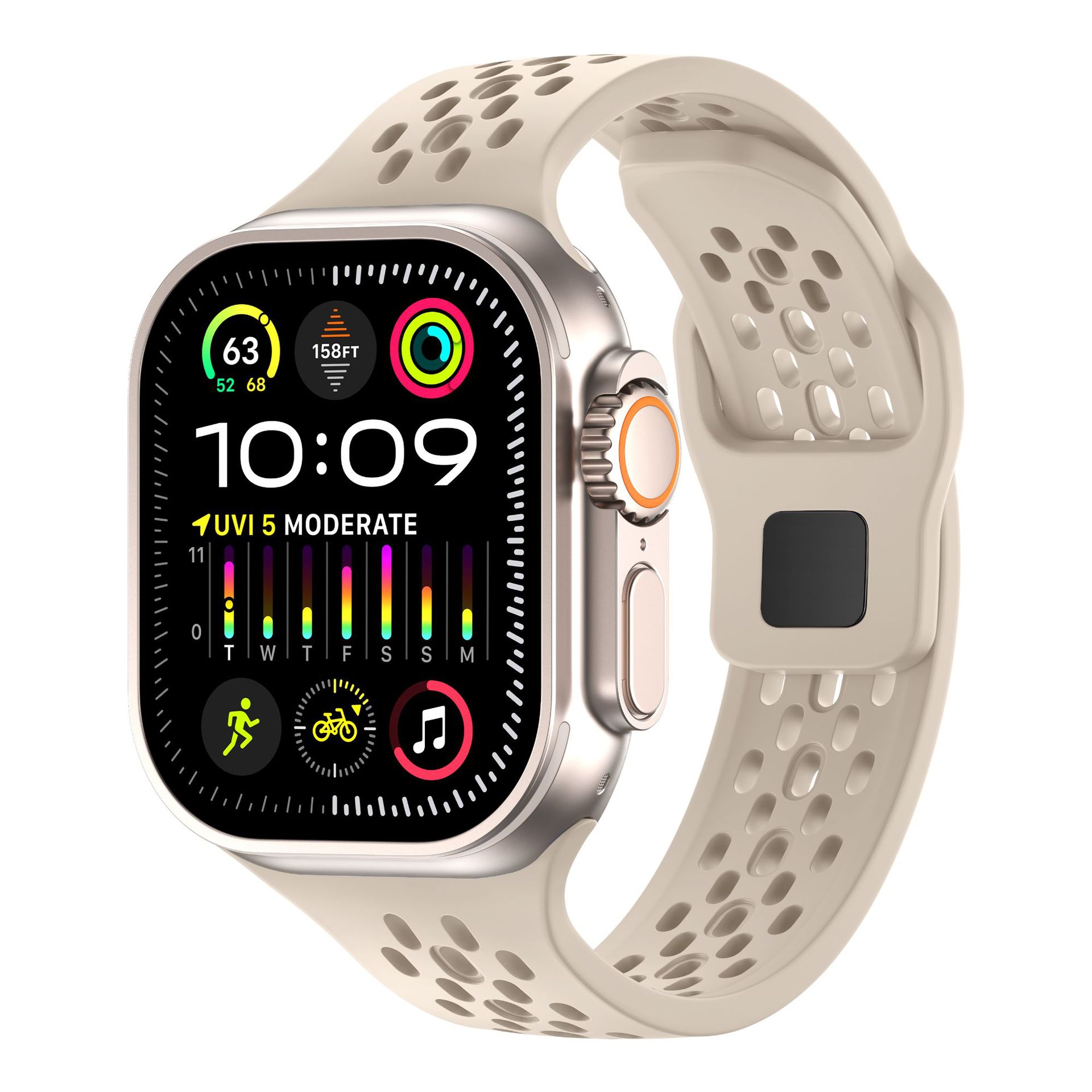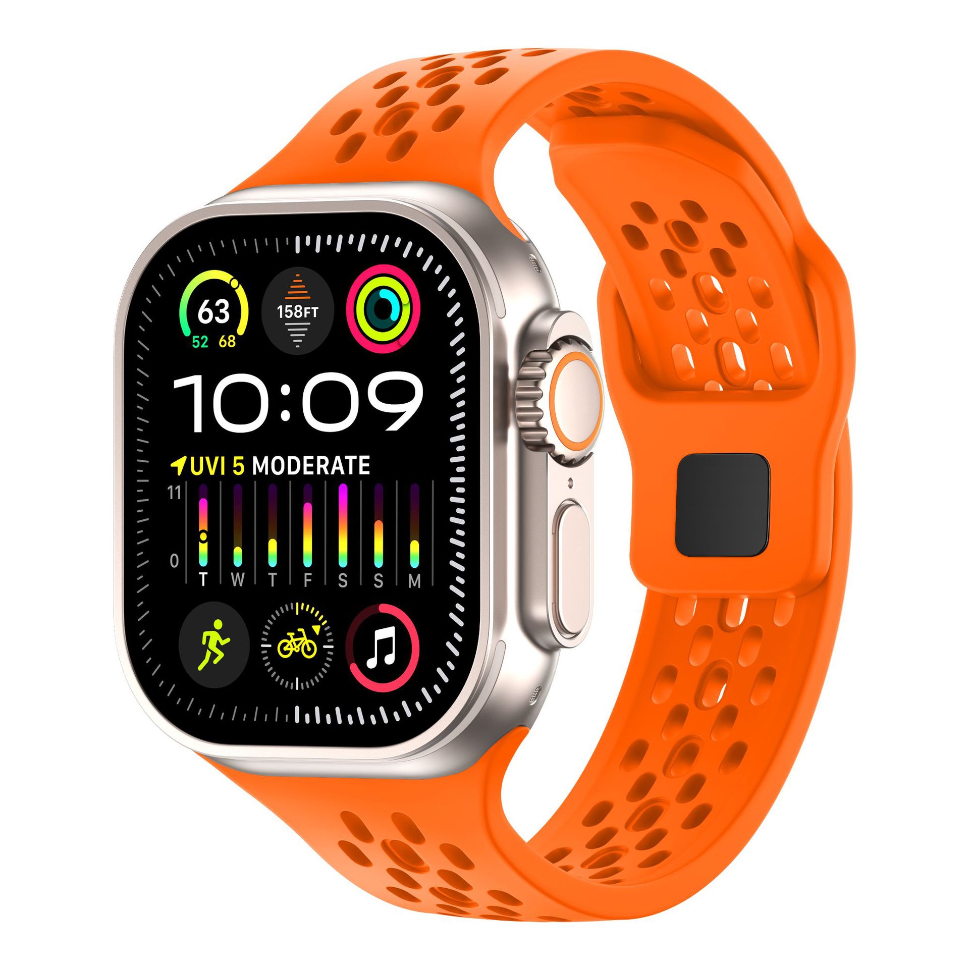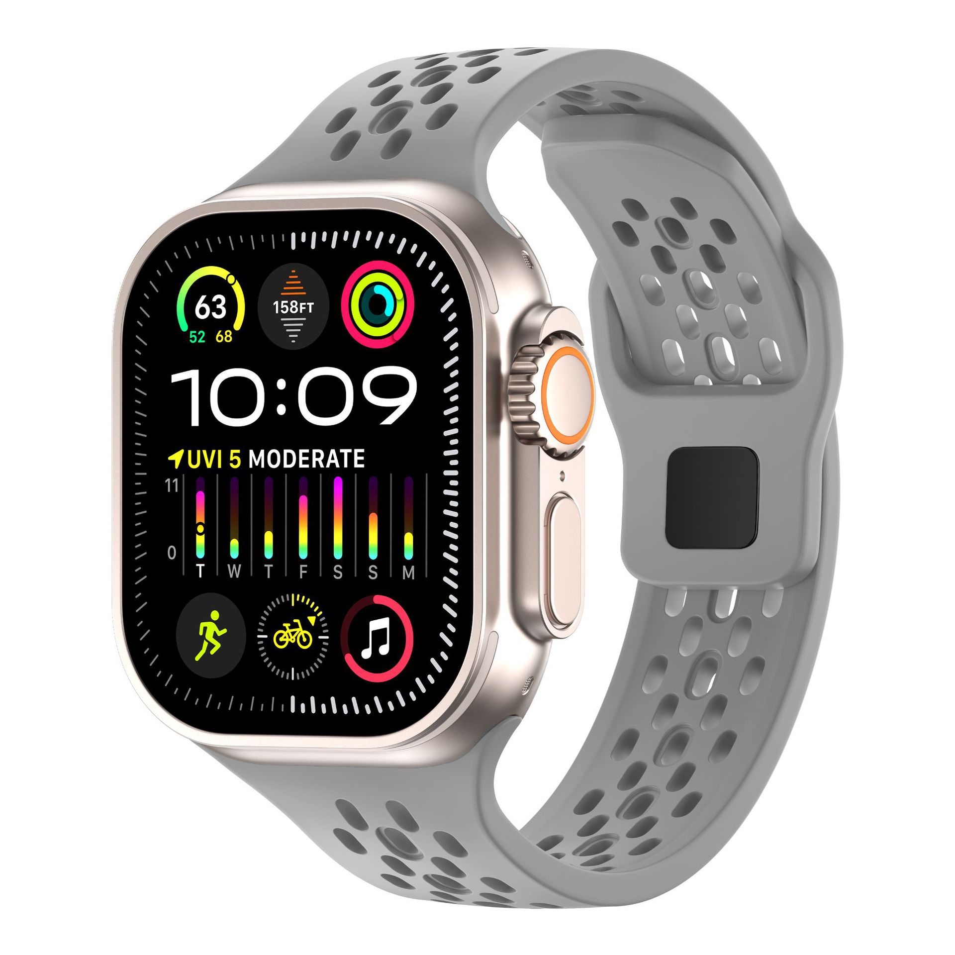 工厂直销适用于苹果表带洞洞透气网孔硅胶表带反扣单色iwatch表带