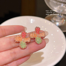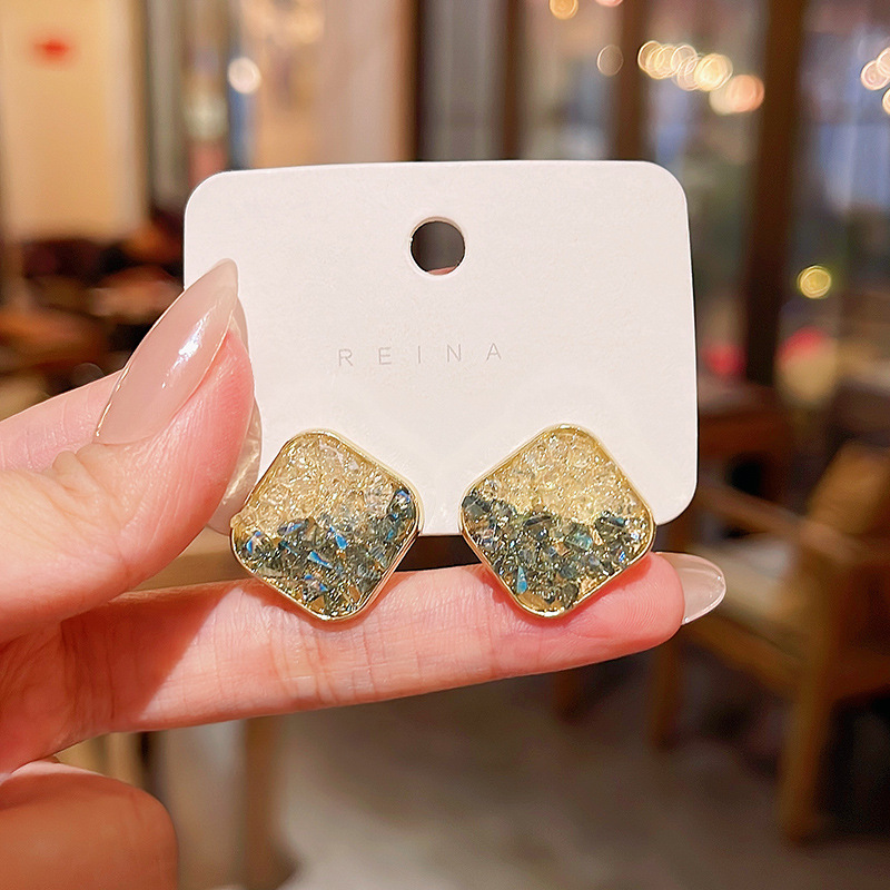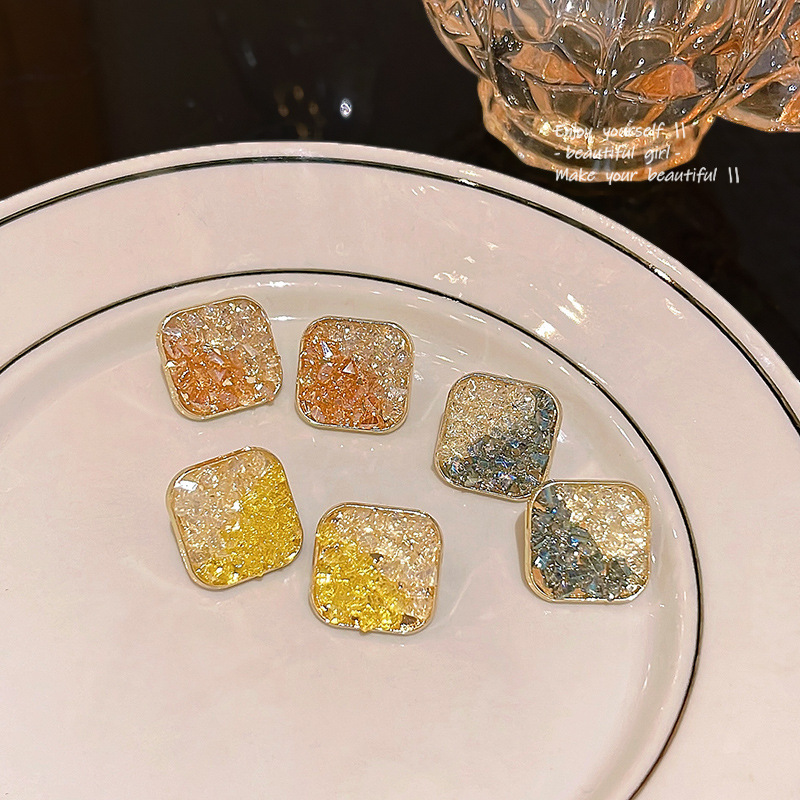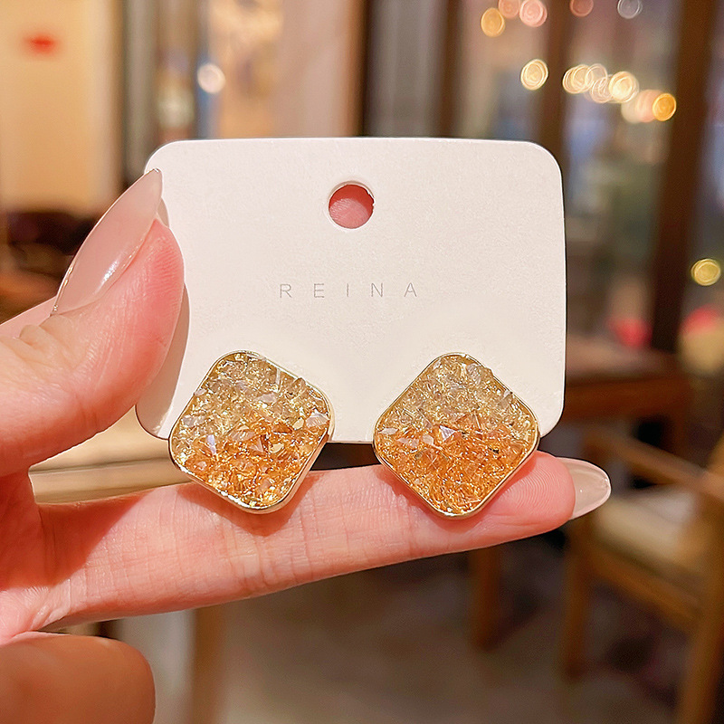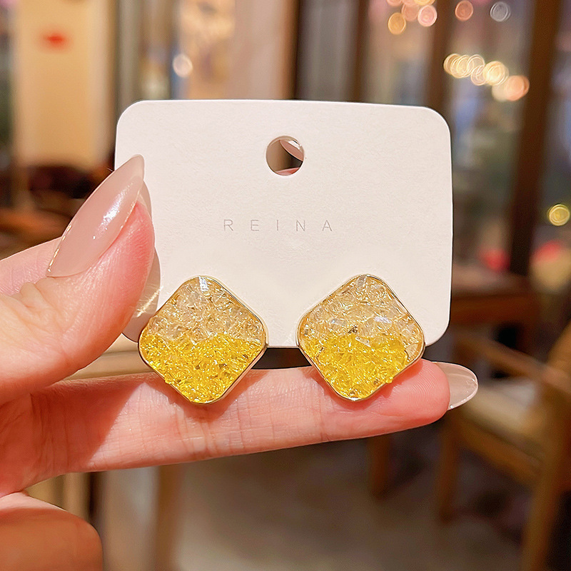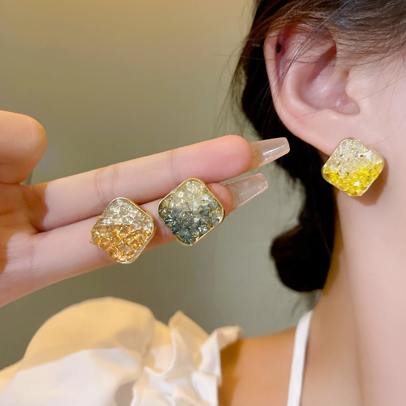 「橘子海」几何方形耳环女S925银针超闪水晶拼色耳钉网红同款耳饰