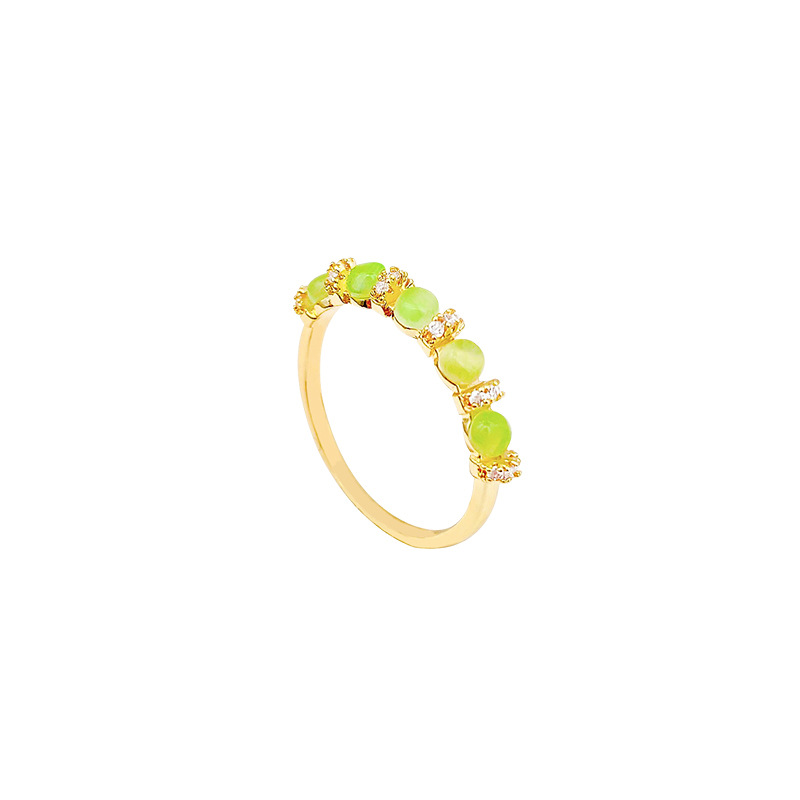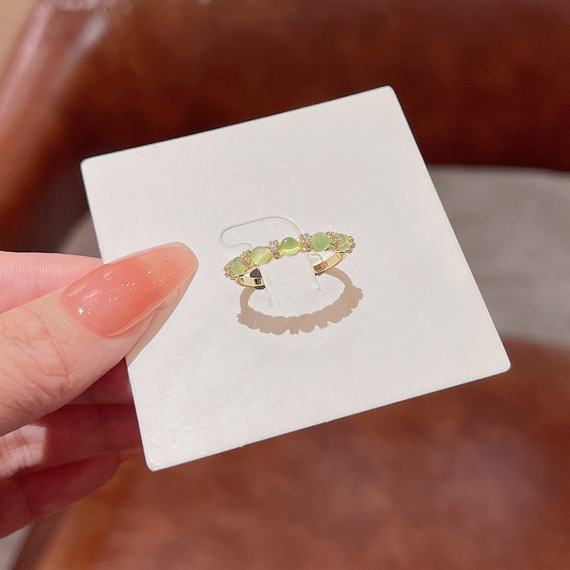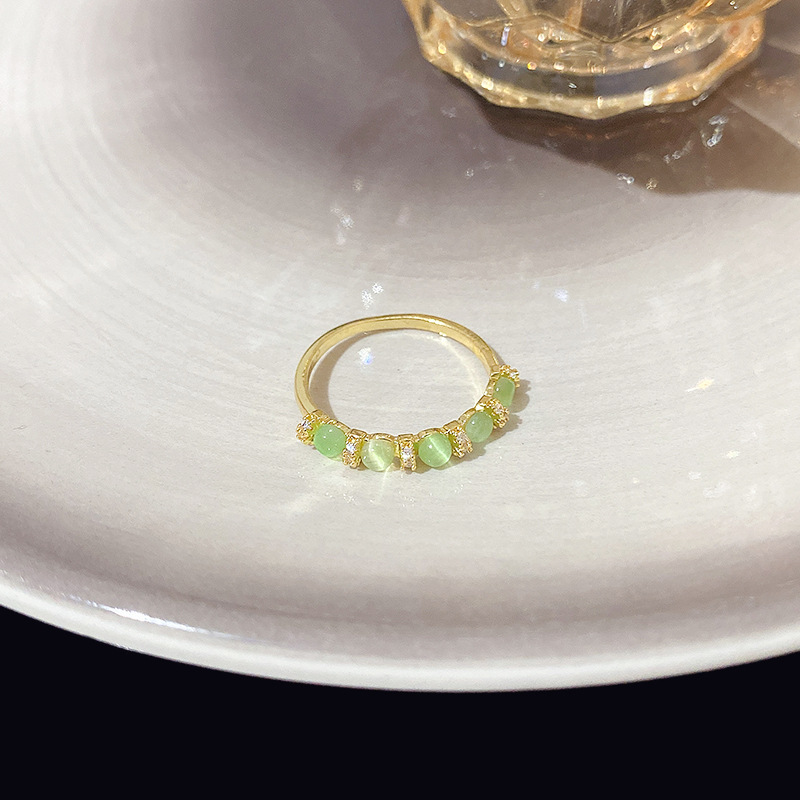 韩国新款小清新简约绿色猫眼石戒指女百搭气质网红同款食指戒指环