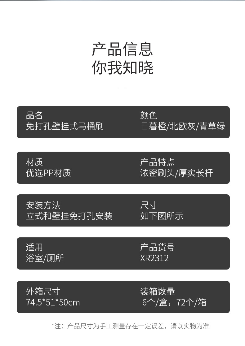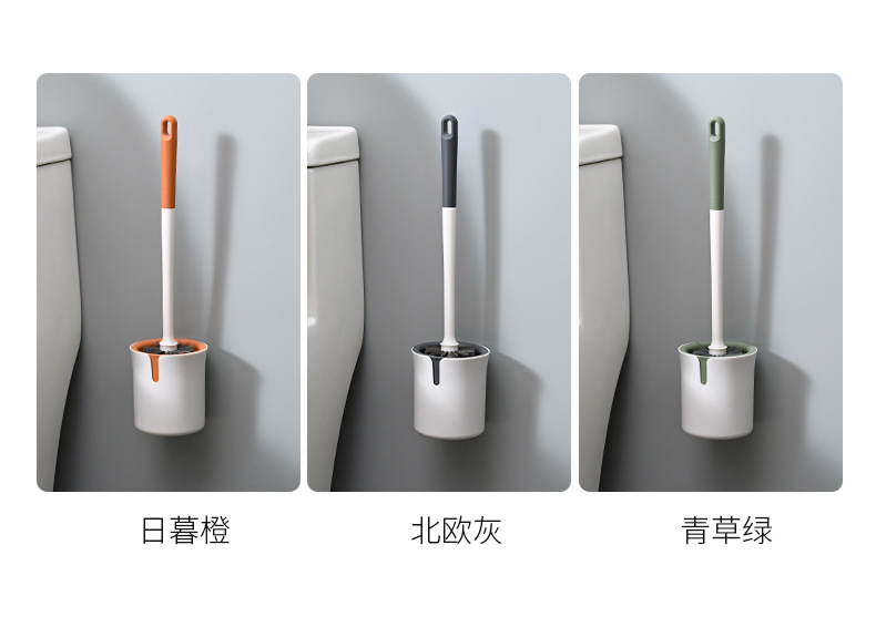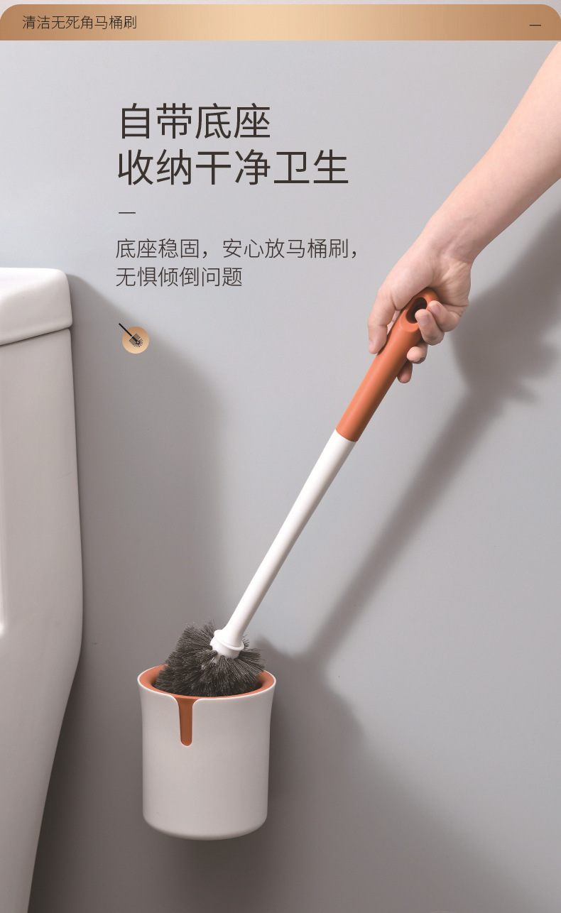 带底座马桶刷 家用卫生间塑料长柄清洁刷子厕所免打孔壁挂马桶刷
