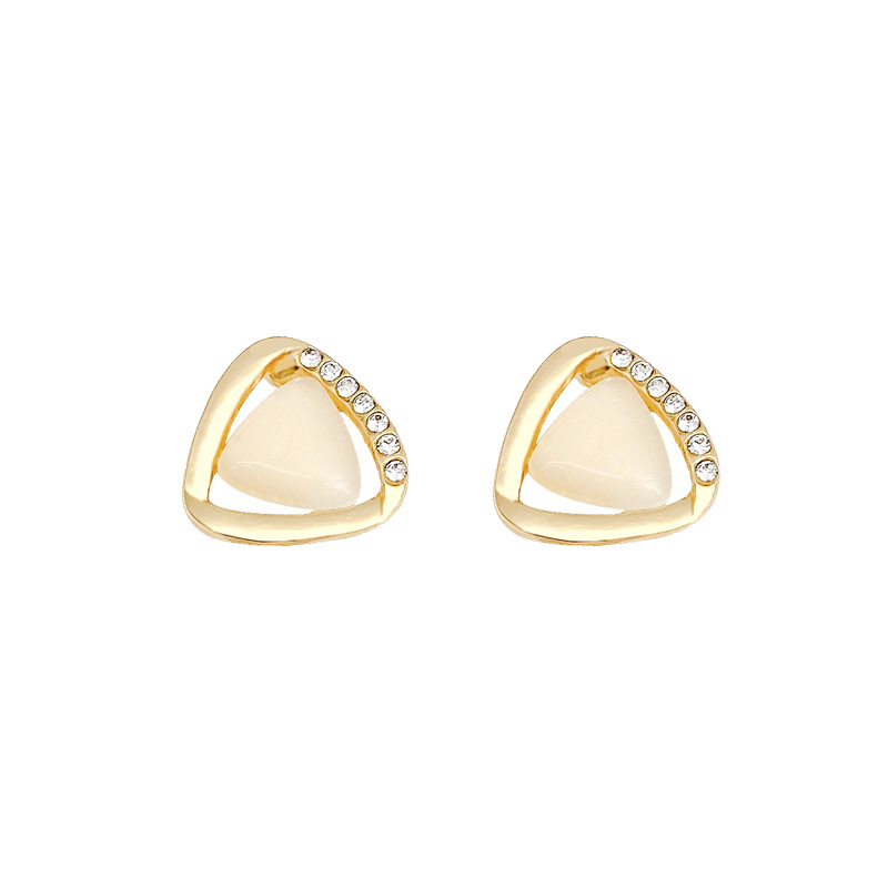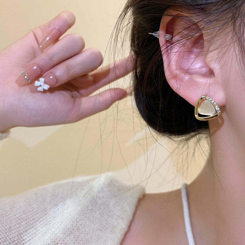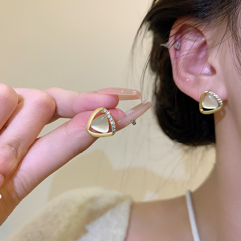 ins潮韩国新款简约几何形耳环女S925银针轻奢小众猫眼石耳钉耳饰