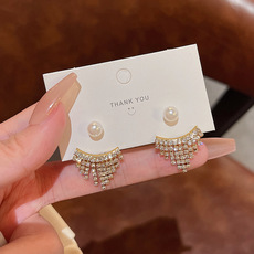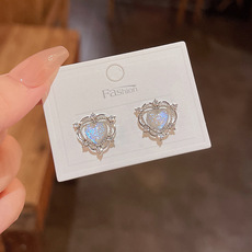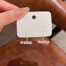 S925银针韩国新款精致锆石耳扣耳环女ins潮轻奢小众个性气质耳钉