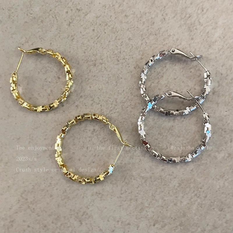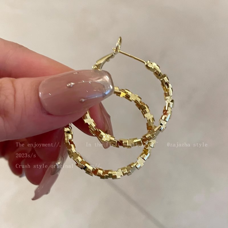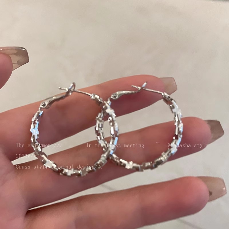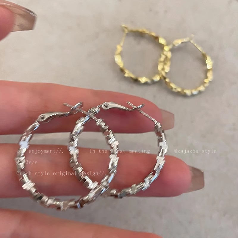 轻奢小众高级感碎银大圆圈耳环女欧美夸张百搭气质耳圈耳钉耳饰品