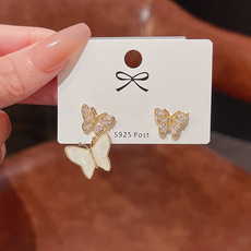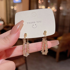 925银针轻奢小众简约几何形锆石耳环女ins潮百搭气质方锆耳钉耳饰