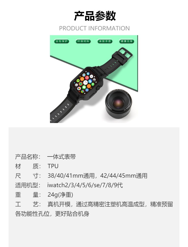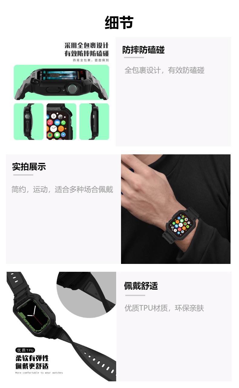 适用苹果表带一体TPU+硅胶表带通用iwatch3456789苹果手表带批发