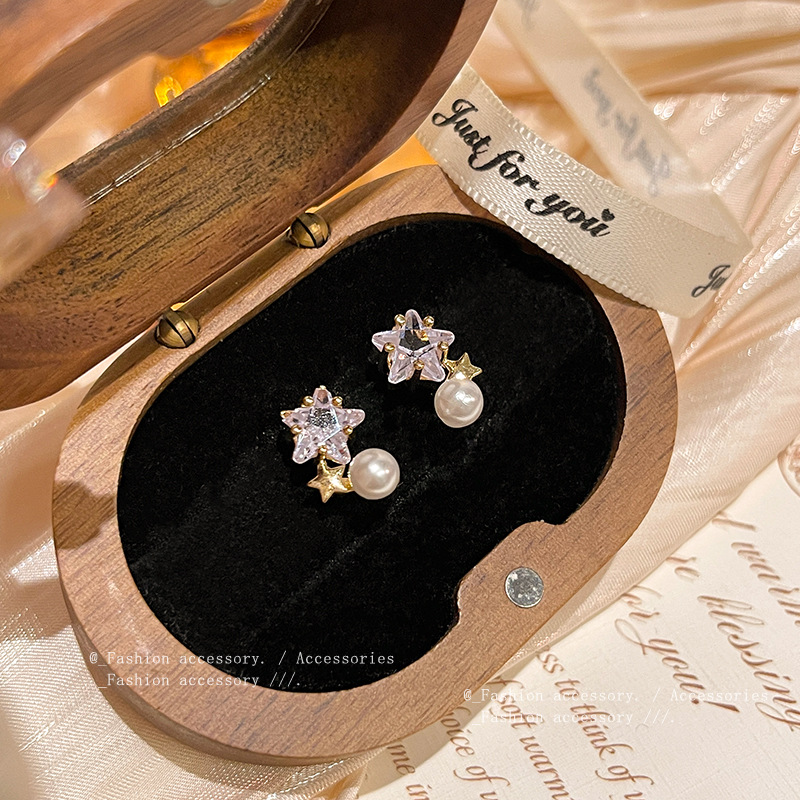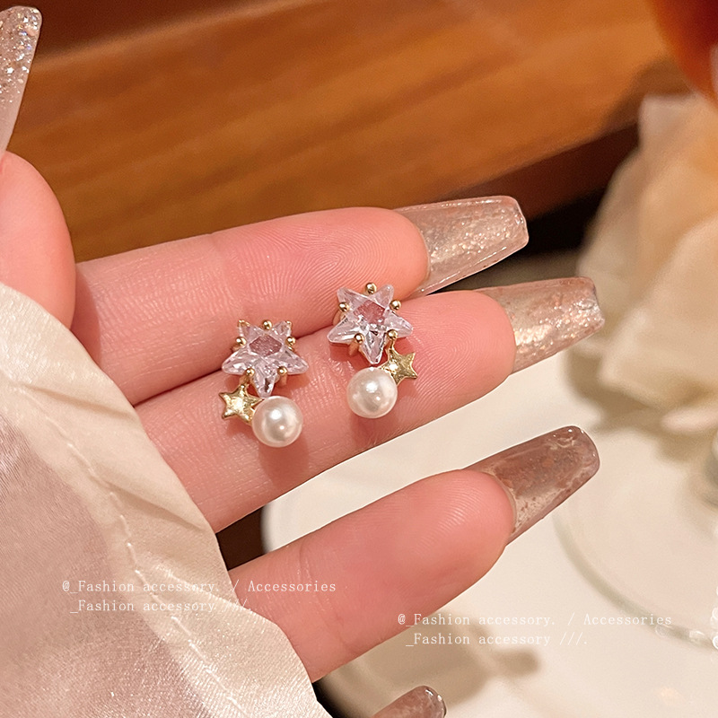 S925银针百搭气质精致锆石星星耳钉女甜美高级感珍珠耳环耳饰批发