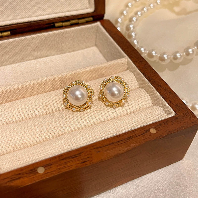法式复古高级感气质珍珠耳钉女S925银针轻奢小众百搭名媛耳环耳饰