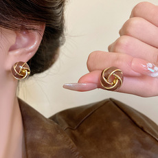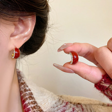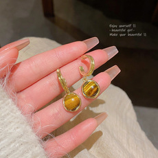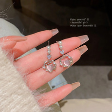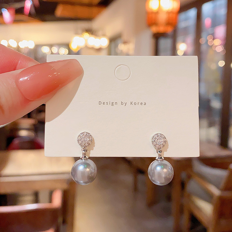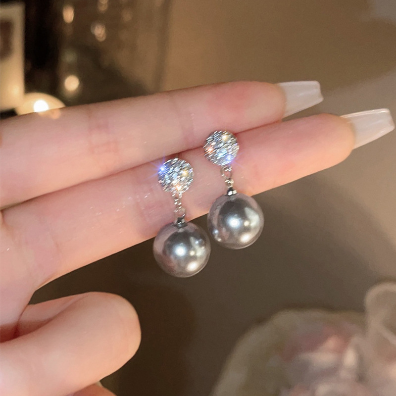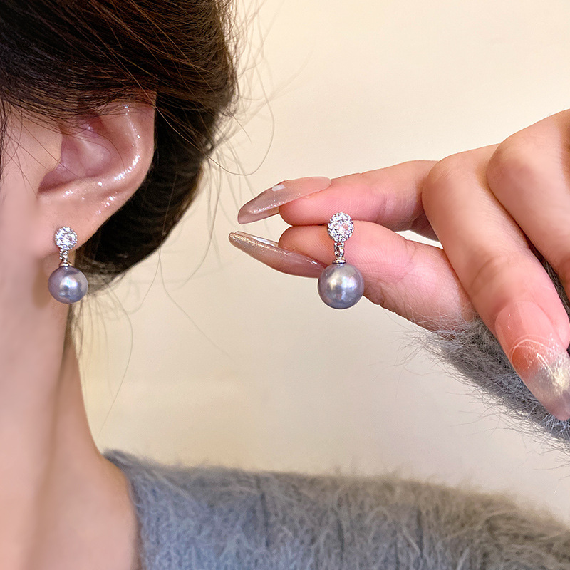 925银针轻奢小众灰色珍珠耳环女ins潮精致微镶锆石几何形耳钉耳饰