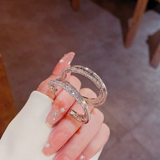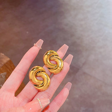 S925银针欧美夸张几何形素圈耳环女个性时尚气质耳钉百搭耳饰批发