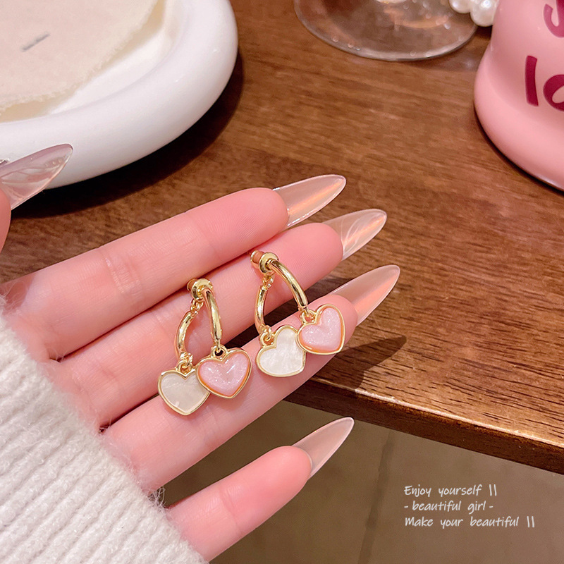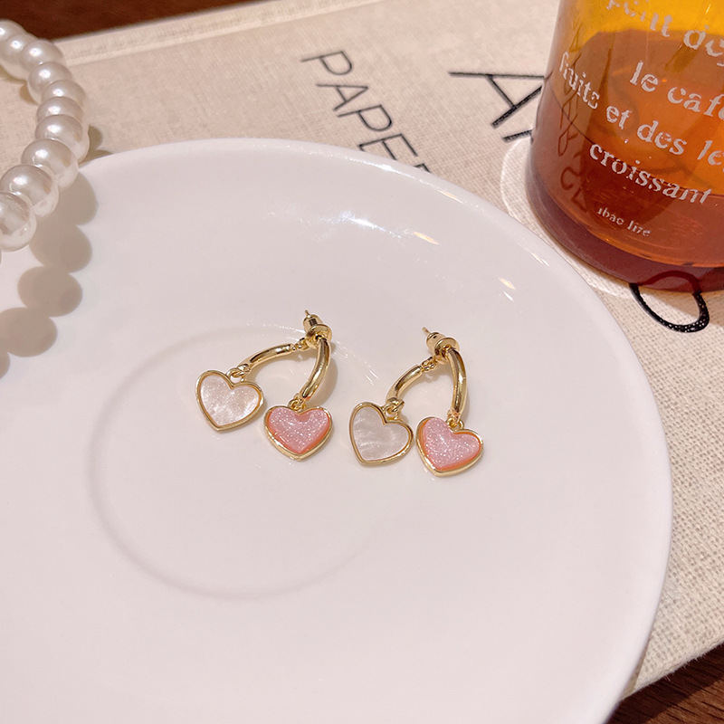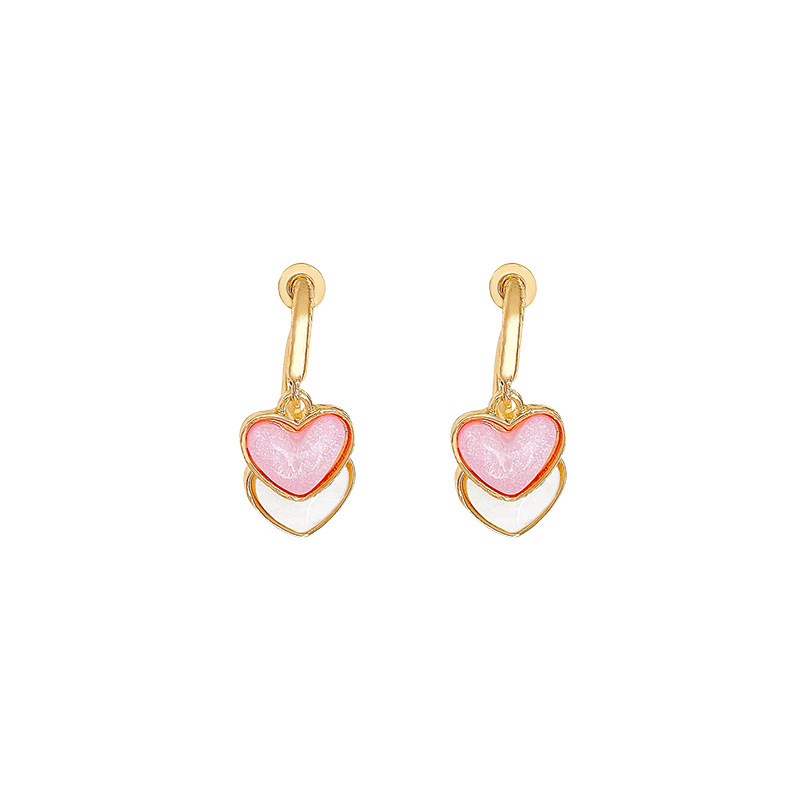韩系甜美气质撞色爱心耳钉女轻奢小众时尚百搭桃心耳环网红耳饰品
