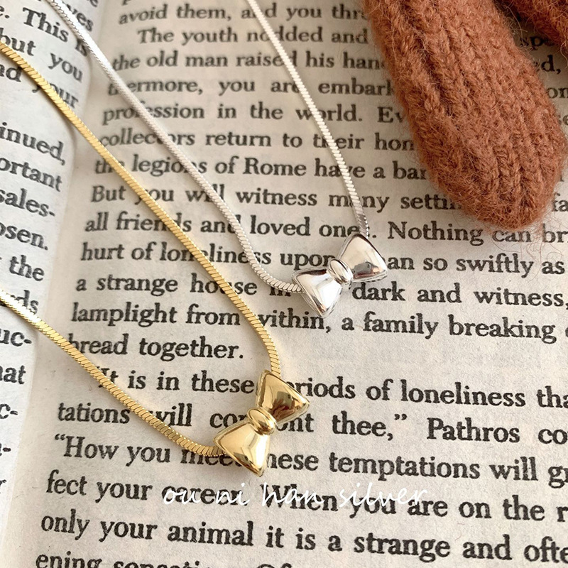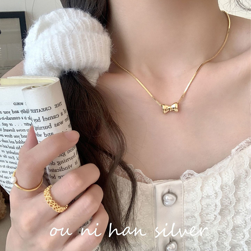 韩系小众设计感蝴蝶结项链女百搭气质高级感蛇骨链网红同款锁骨链