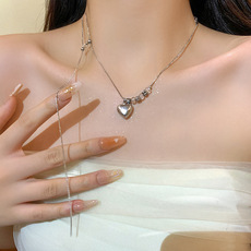 轻奢小众双层叠戴山茶花钛钢项链女韩国高级设计感长款流苏锁骨链