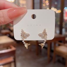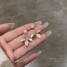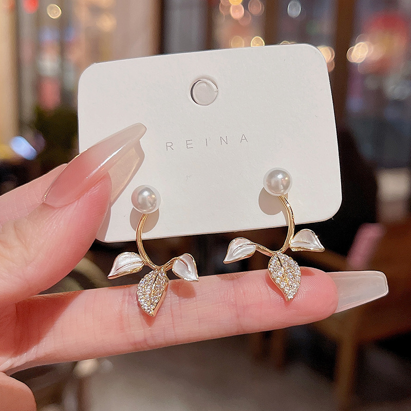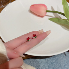 S925银针韩国新款简约微镶花朵耳环女ins潮小清新珍珠耳钉耳饰品