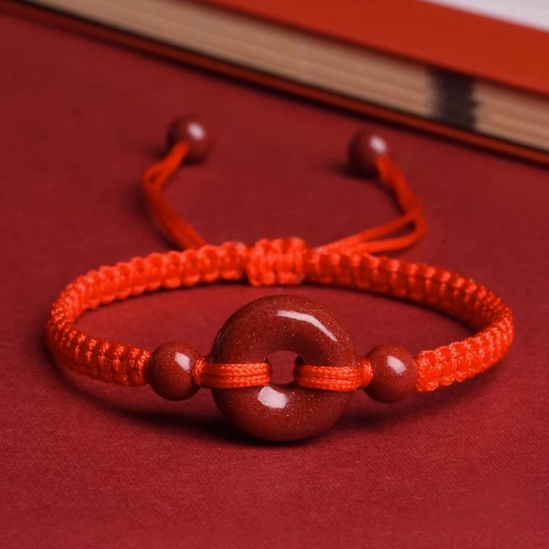 朱砂红绳手链紫金砂平安扣手串红绳脚链女编制手绳男女手绳低含量