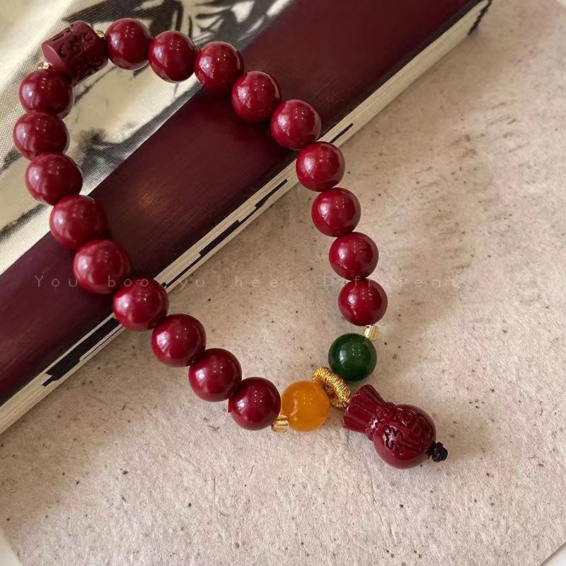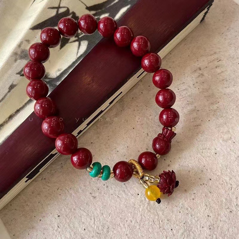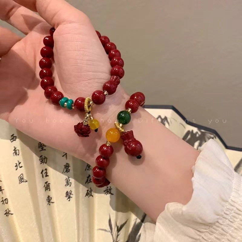工厂直发新款本命年朱砂莲花吊坠手链女新中式串珠福袋手饰品紫金