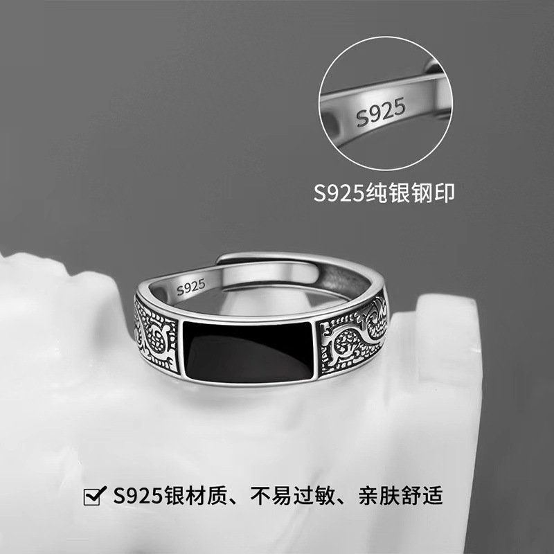 925纯银戒指男新款潮牌百搭高级感小众花纹男生开口戒指男士戒指