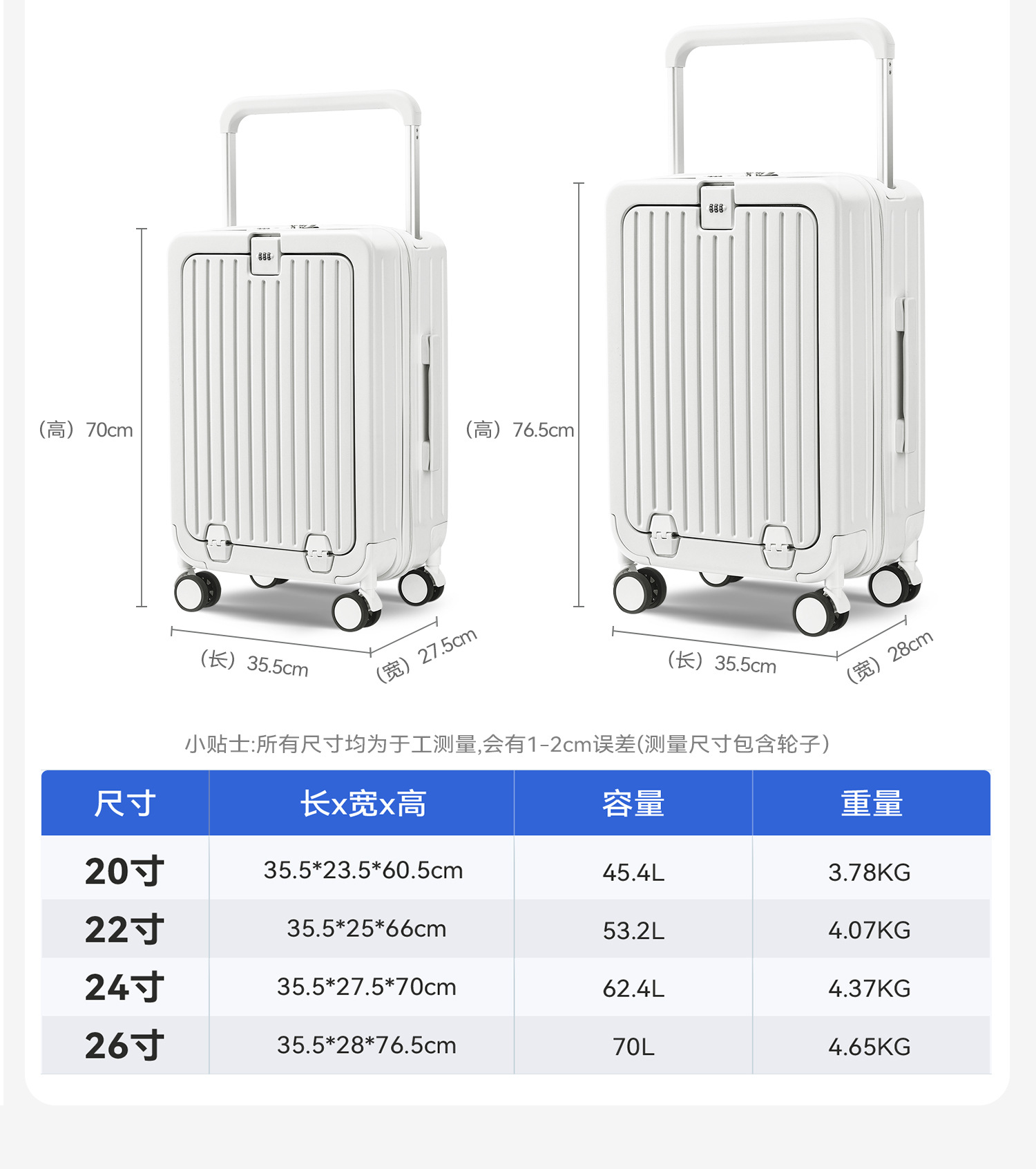 勇晟行李箱24寸宽拉杆2024新款一件前开盖旅行箱万向轮抗摔拉杆箱