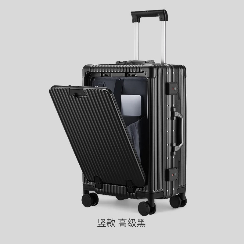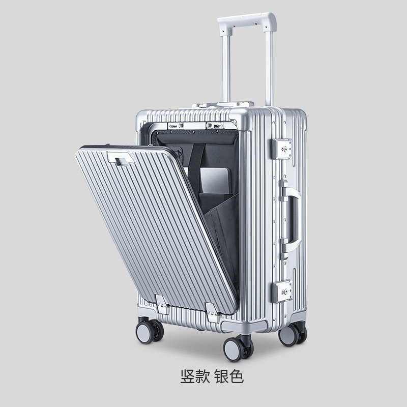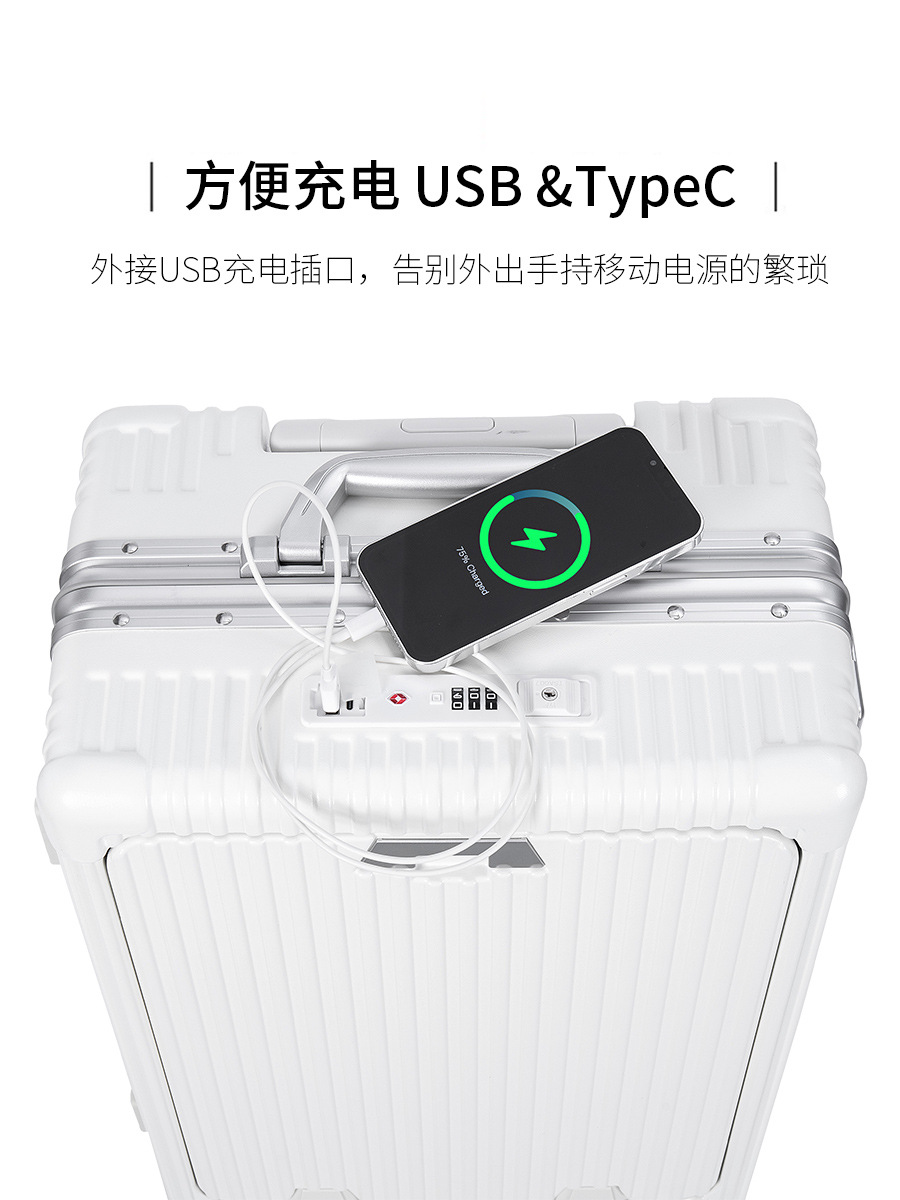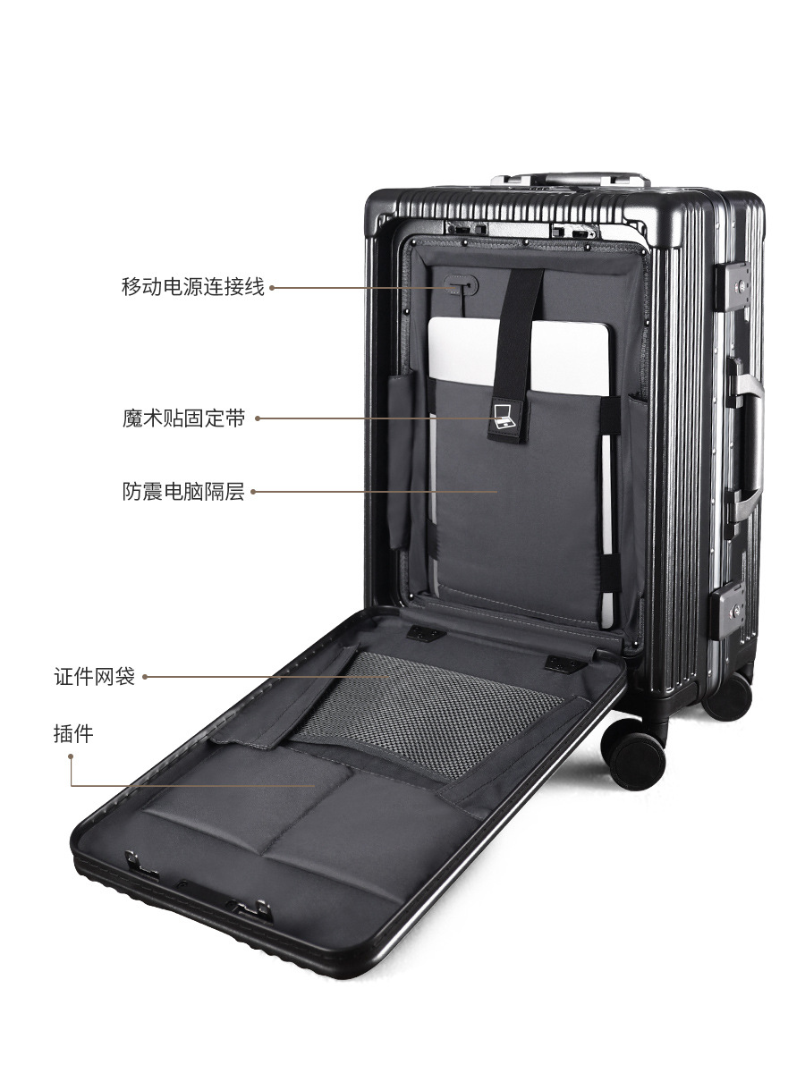 多功能行李箱前开口登机箱pc铝框密码拉杆箱20寸万向轮充电旅行箱