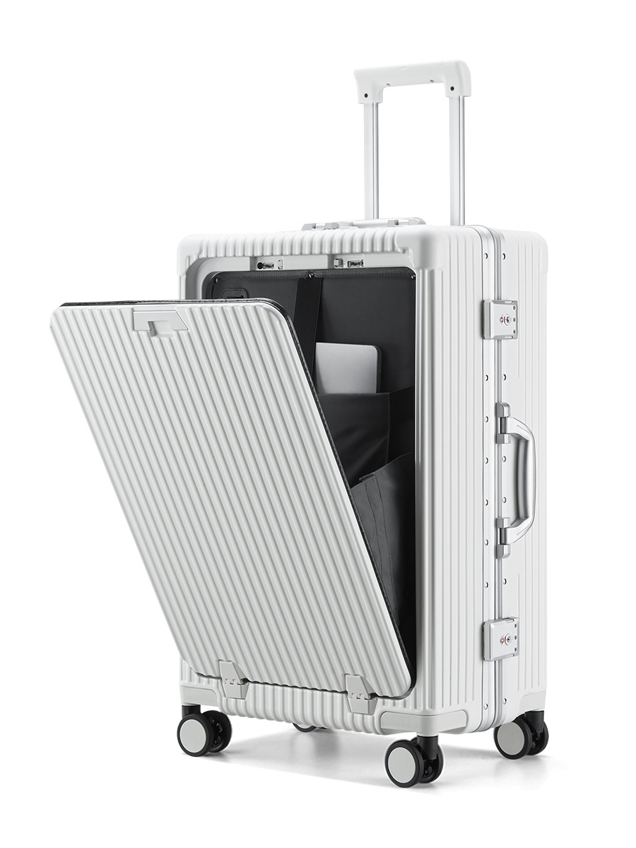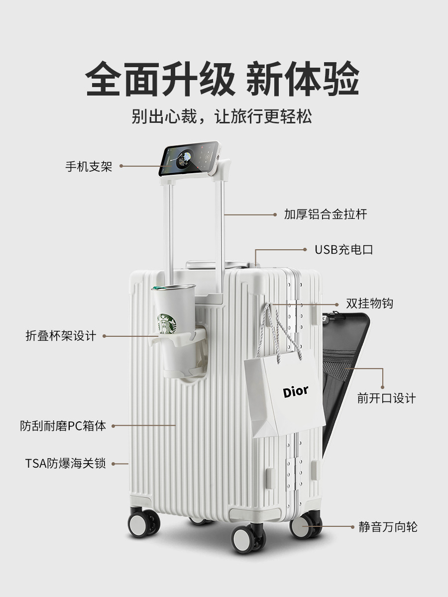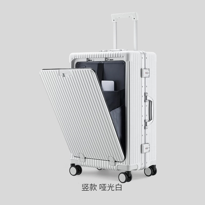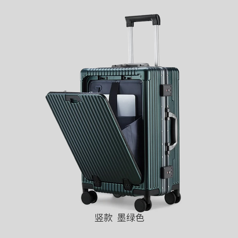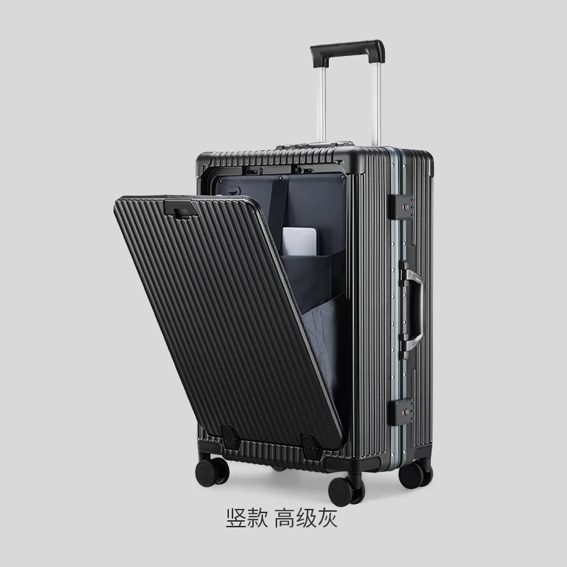 多功能行李箱前开口登机箱pc铝框密码拉杆箱20寸万向轮充电旅行箱