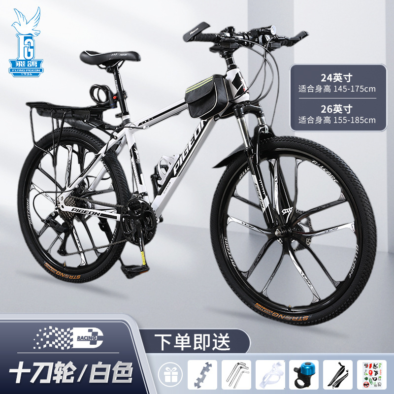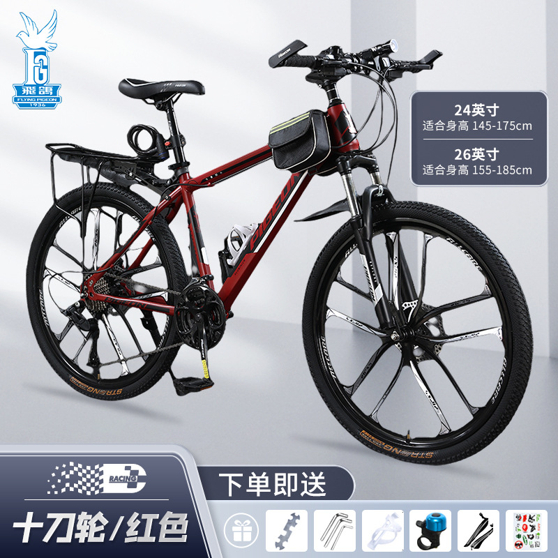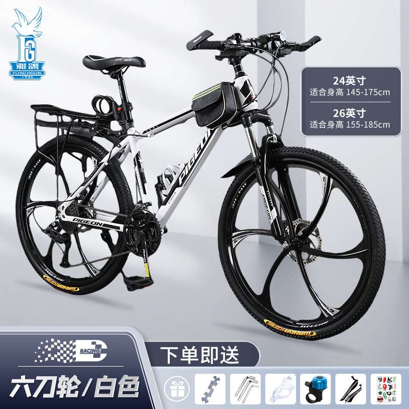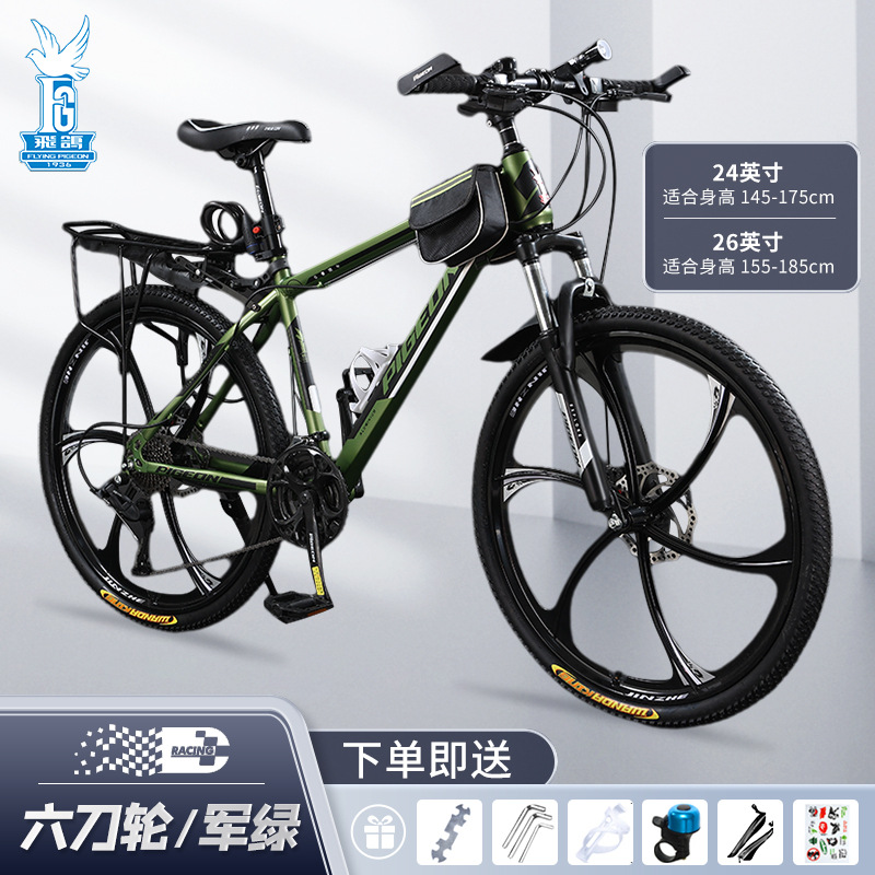 飞鸽自行车24寸运动户外山地自行车男式越野变速山地车骑行公路车