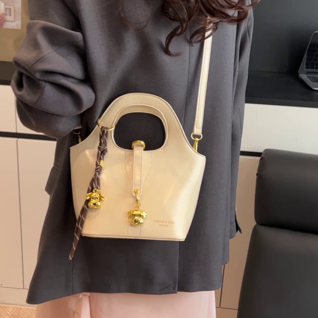 新款时尚手提包高级感水桶包简约百搭单肩斜挎包8127