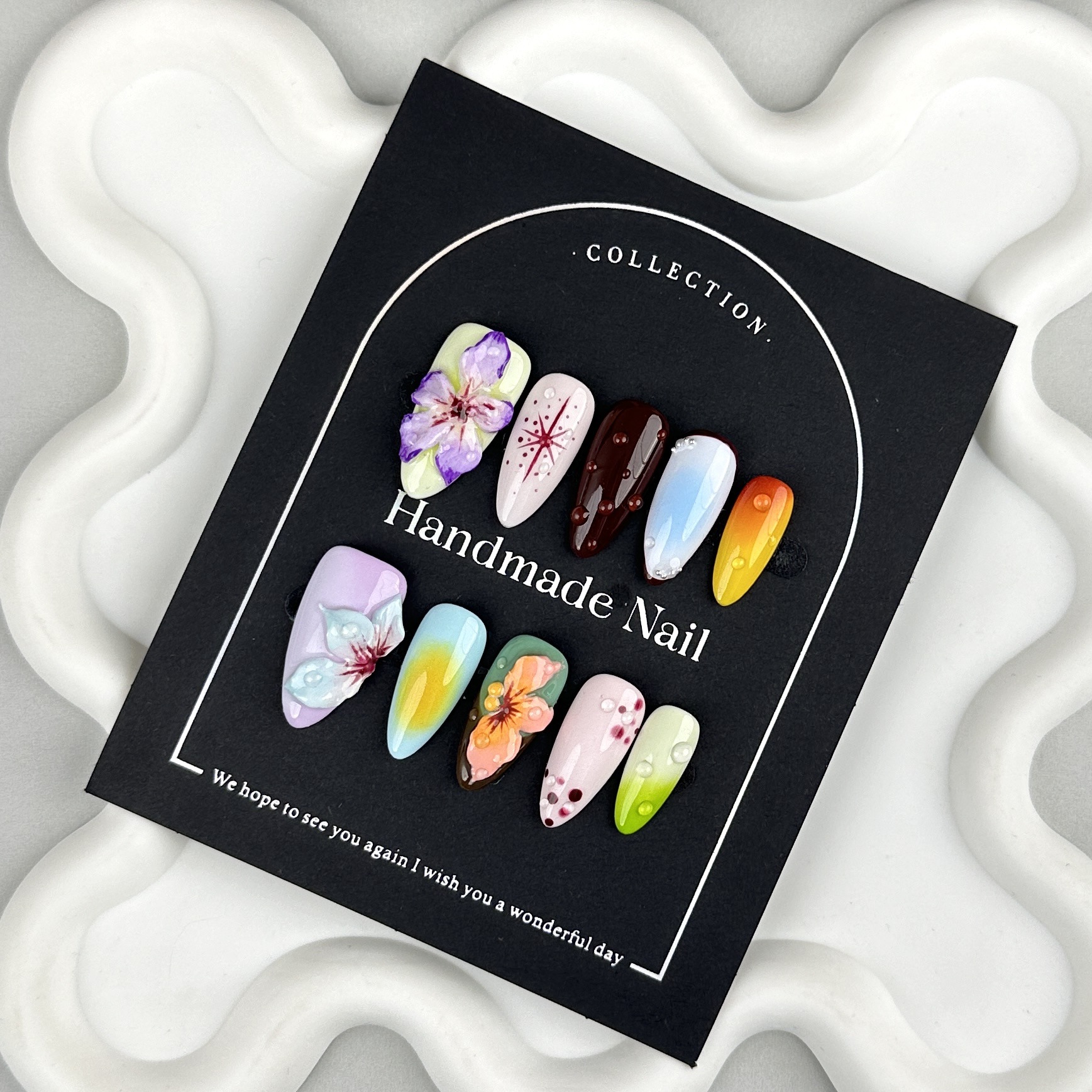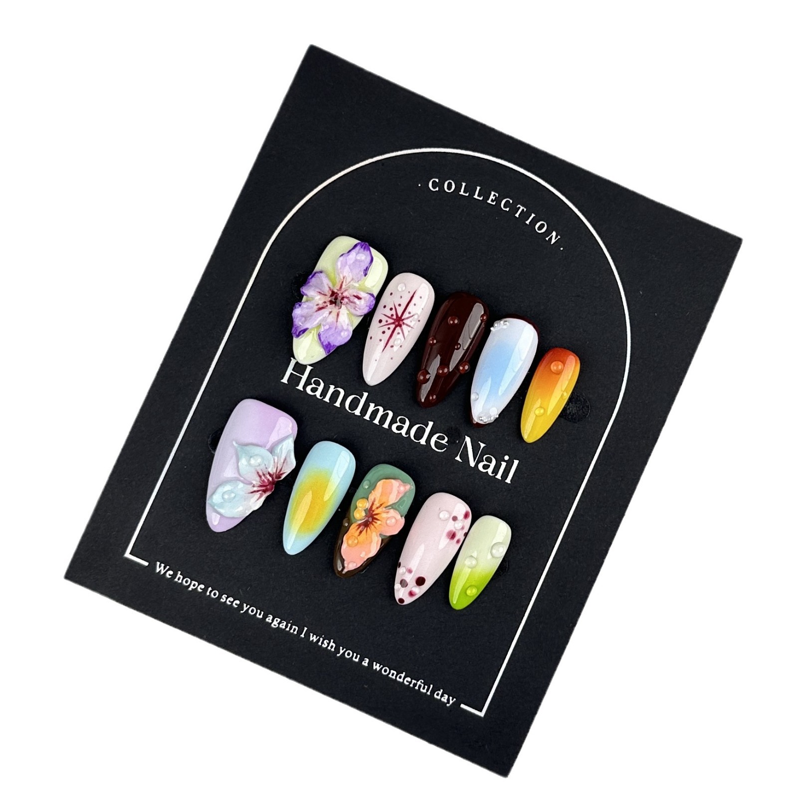欧美杏仁甲纯手工雕花穿戴甲片美甲贴片穿戴甲欧美批发中长款