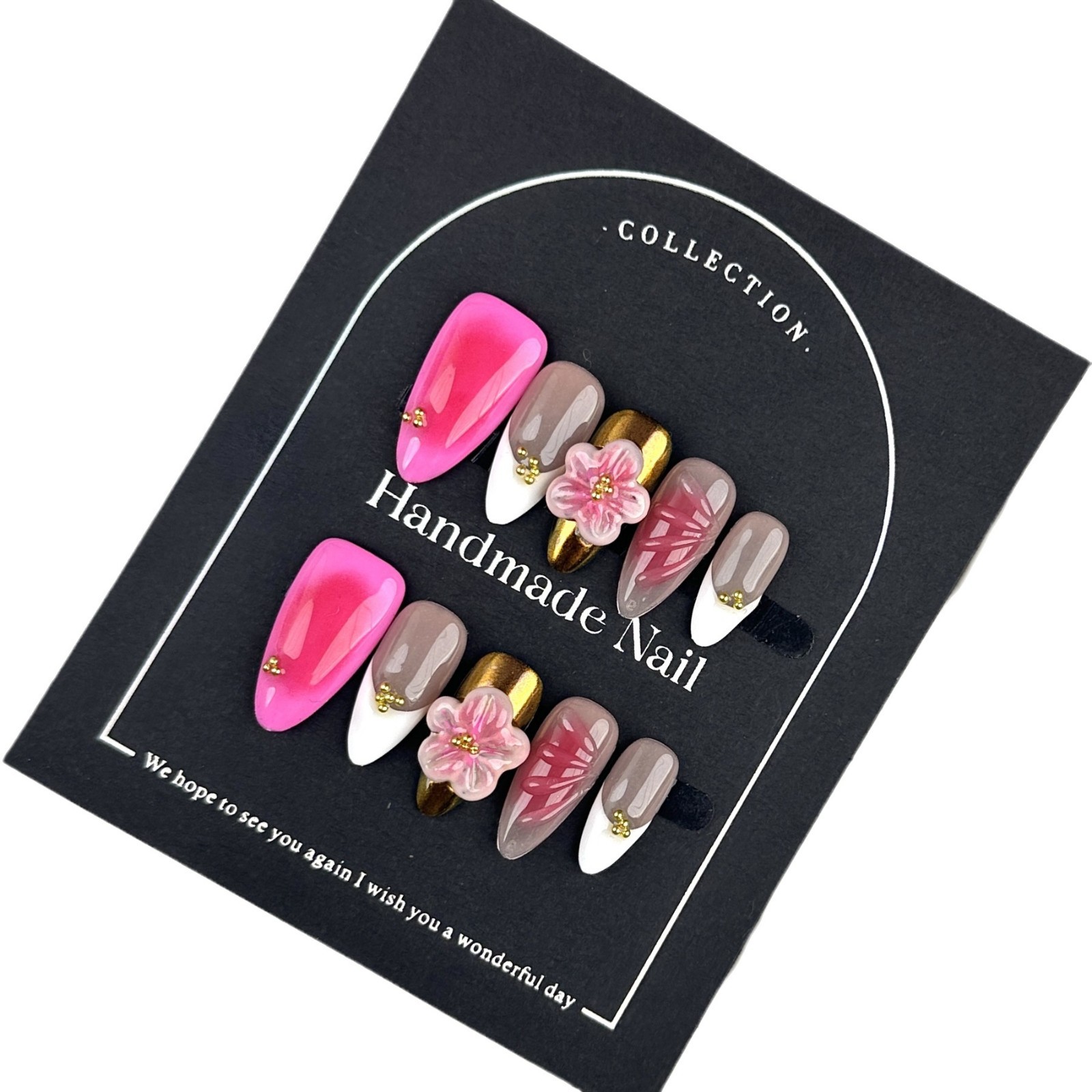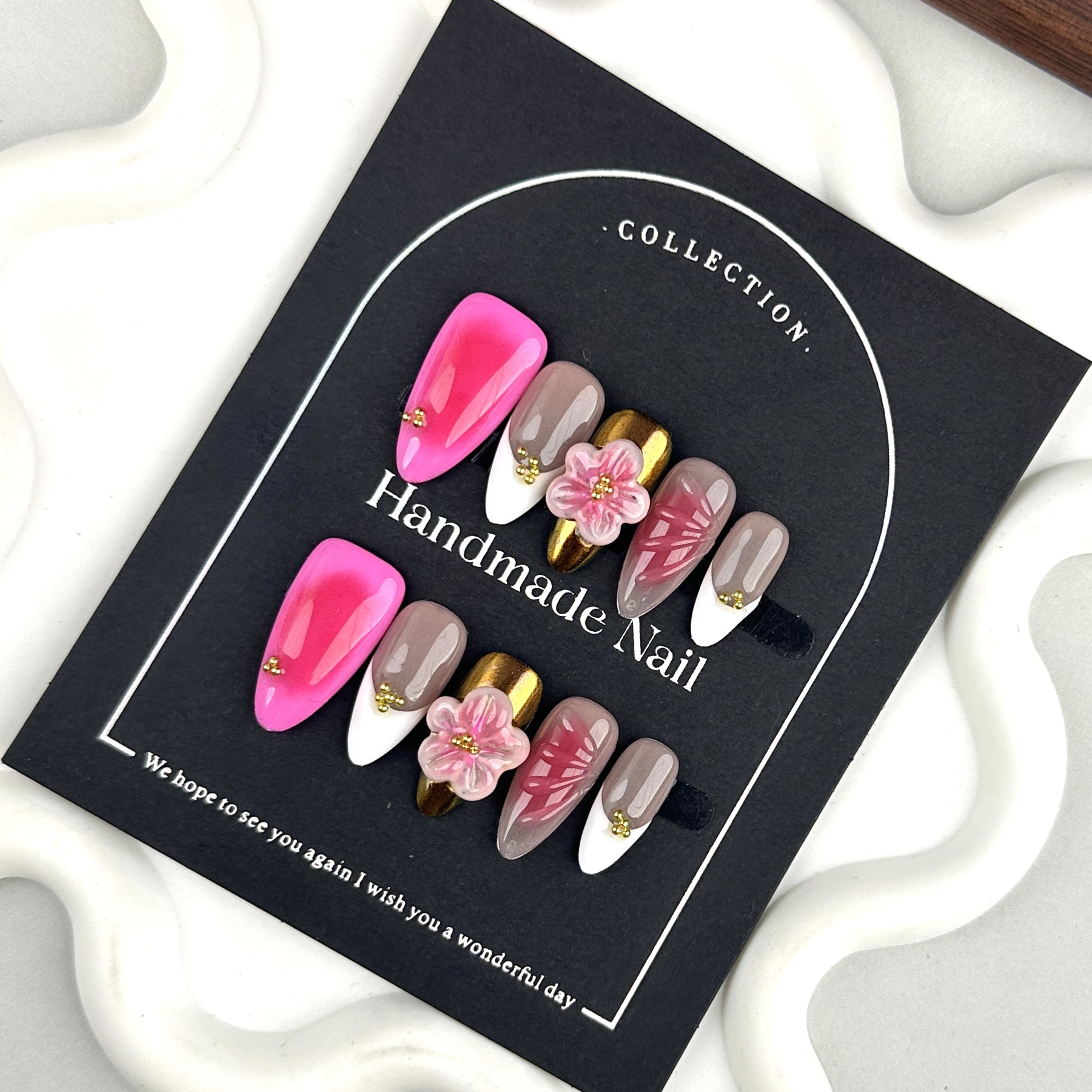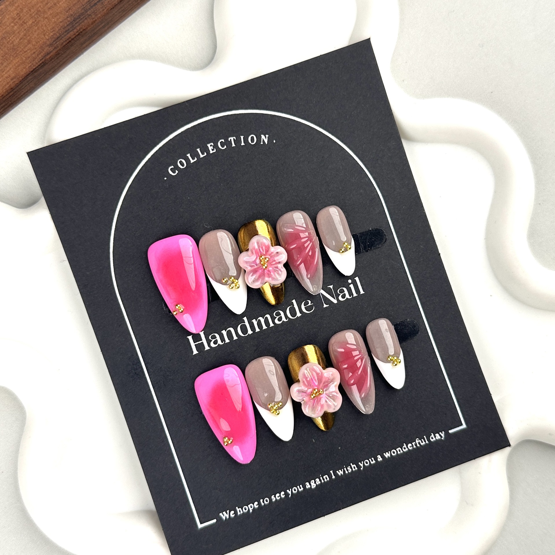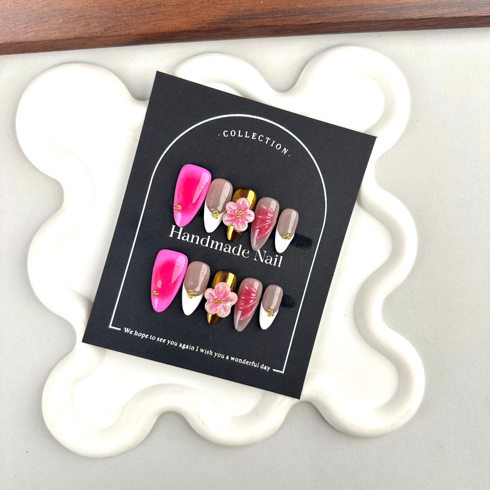 纯手工捏花穿戴甲质美甲贴片穿戴甲片高级感穿戴甲欧美跨境批发