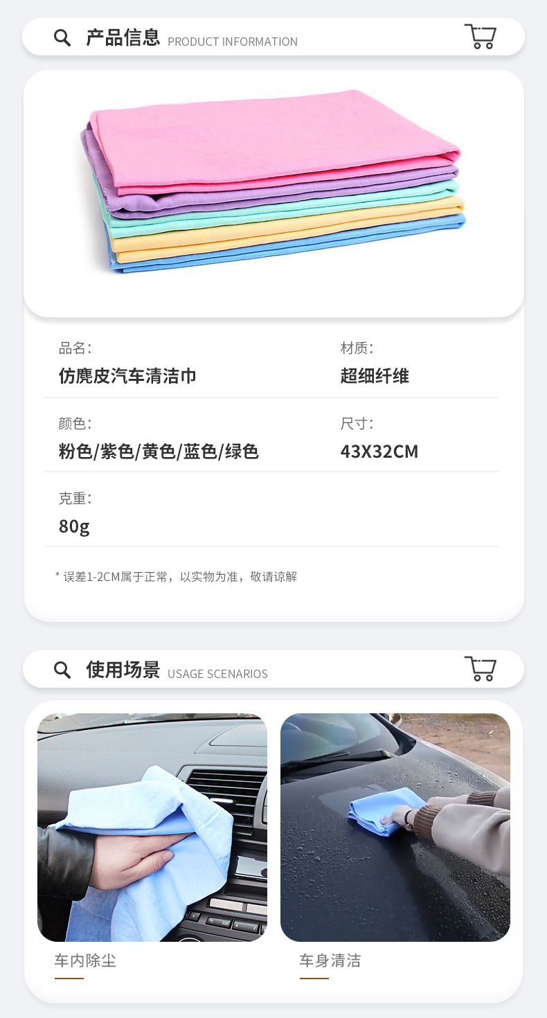 加厚耐用鹿皮巾洗车麂皮巾擦玻璃布吸水大号洗车毛巾麂皮布擦车巾