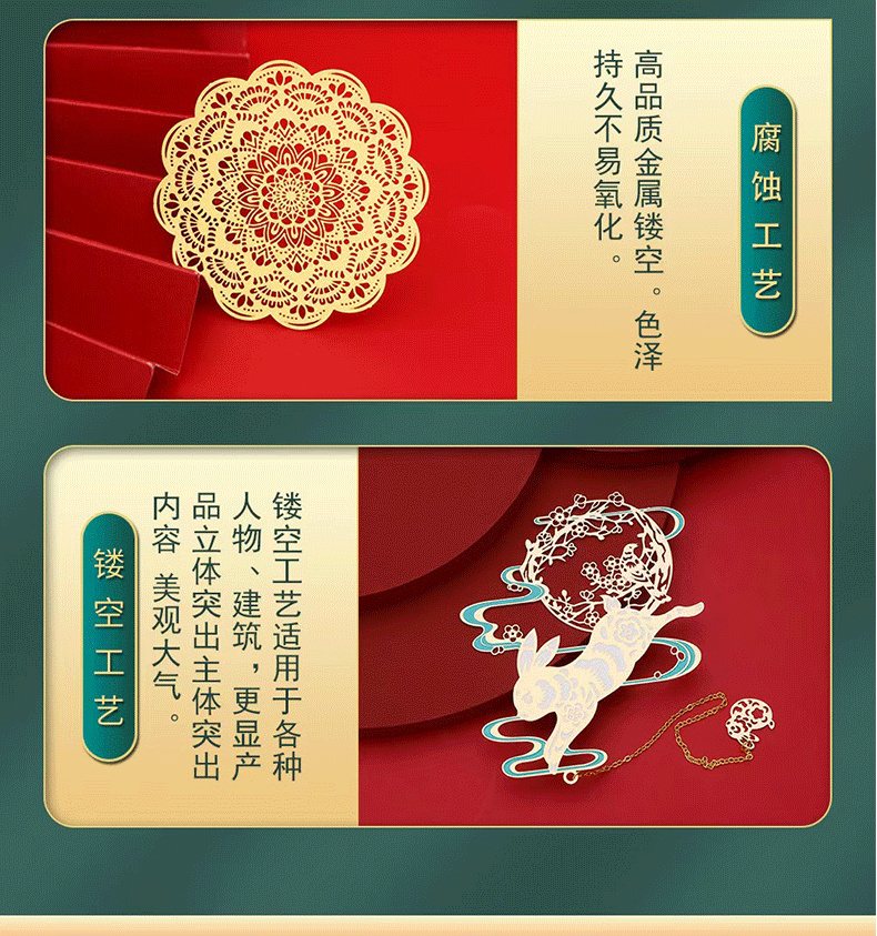 定制金属书签 黄铜烤漆中国风景区文创镂空书签 学校博物馆纪念品