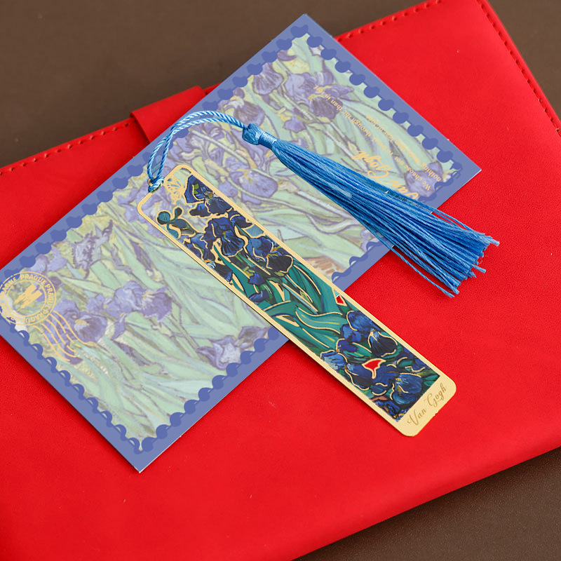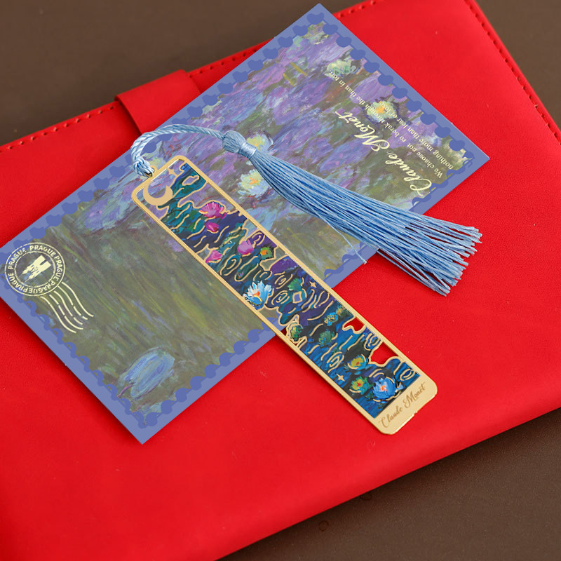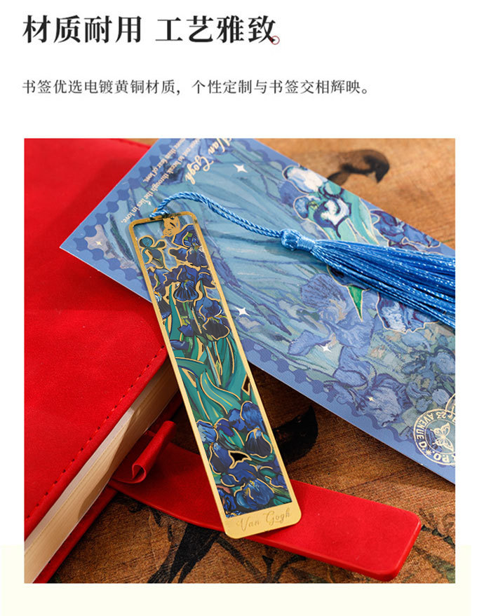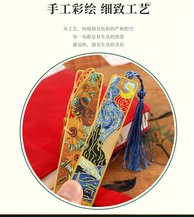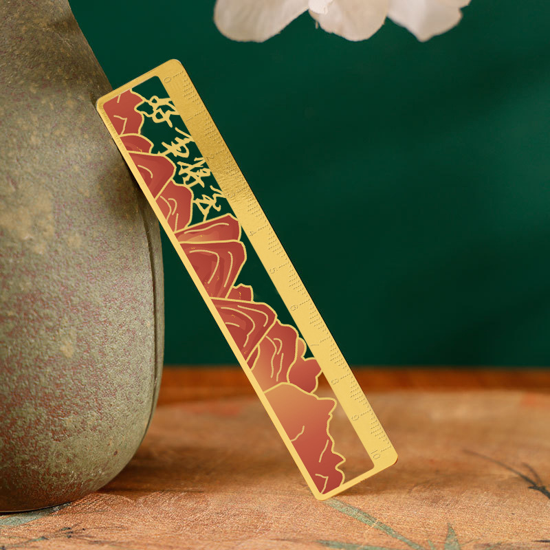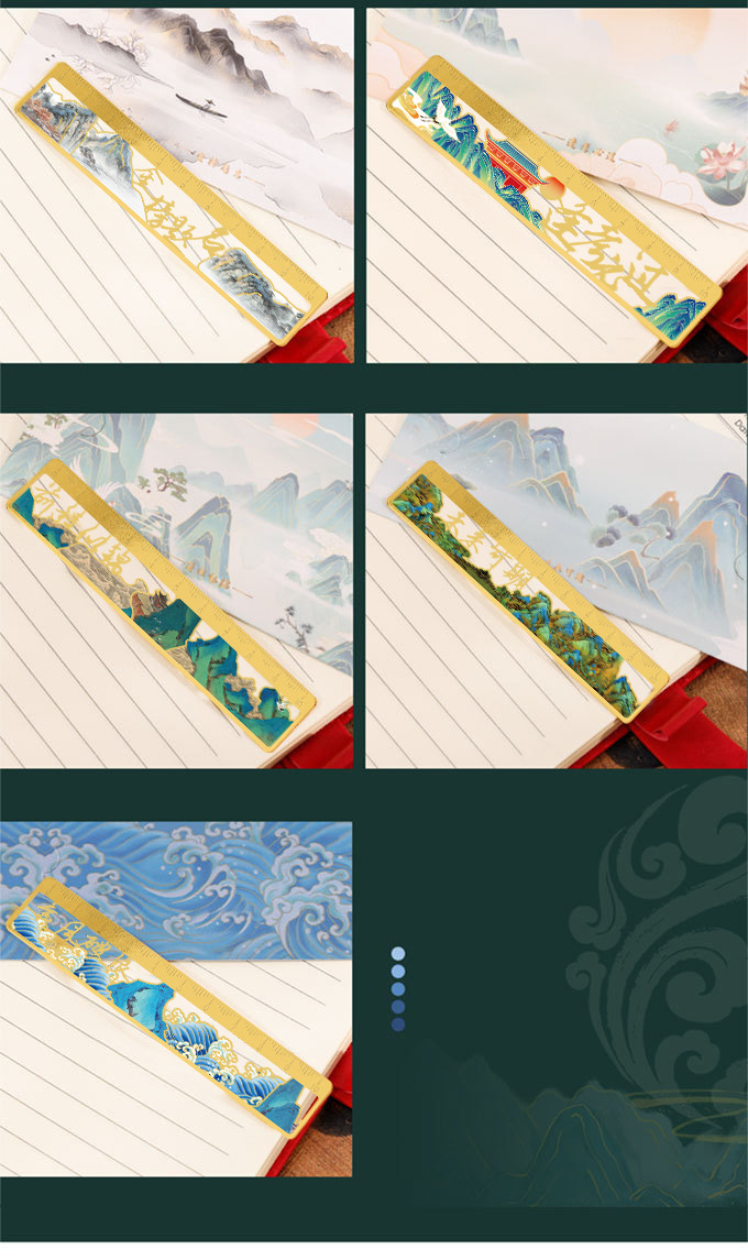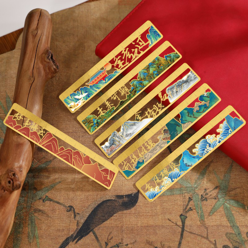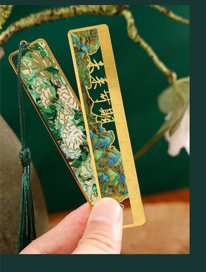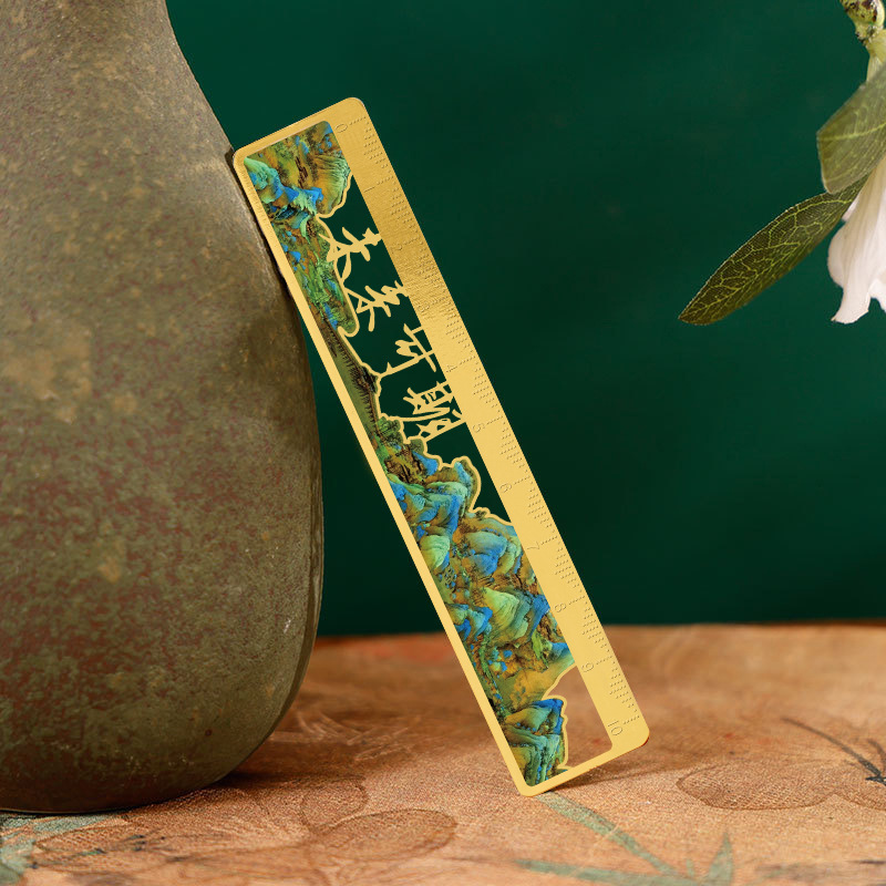 千里江山繁花掠影油画镂空书签学生毕业礼品老师金属黄铜直尺书签