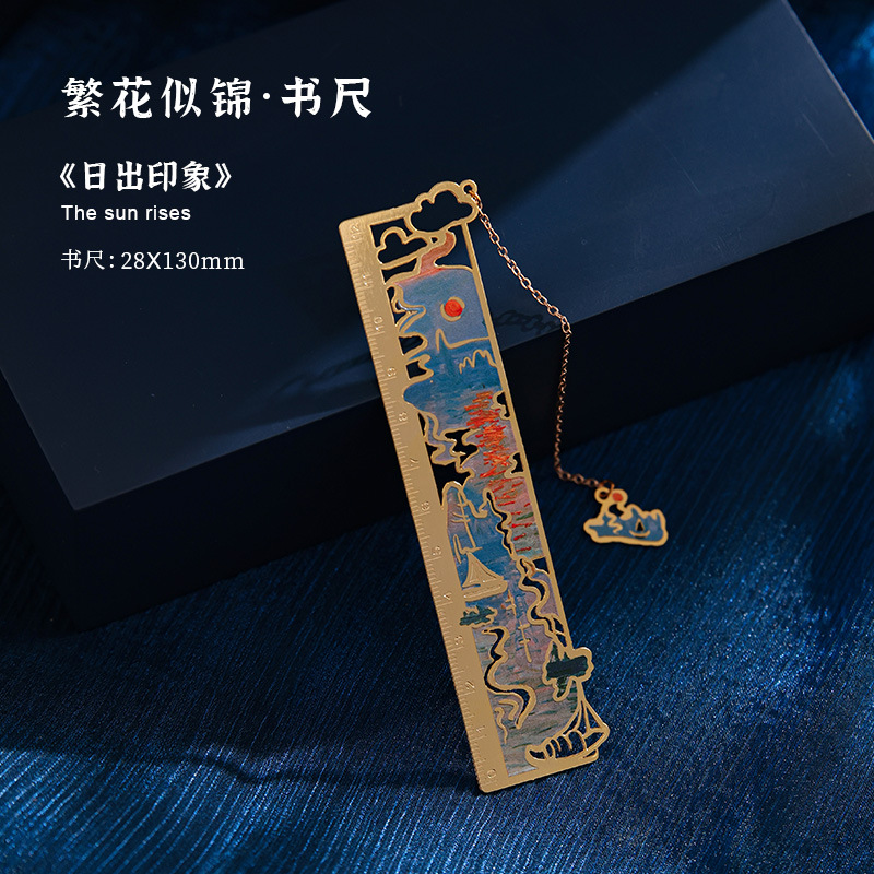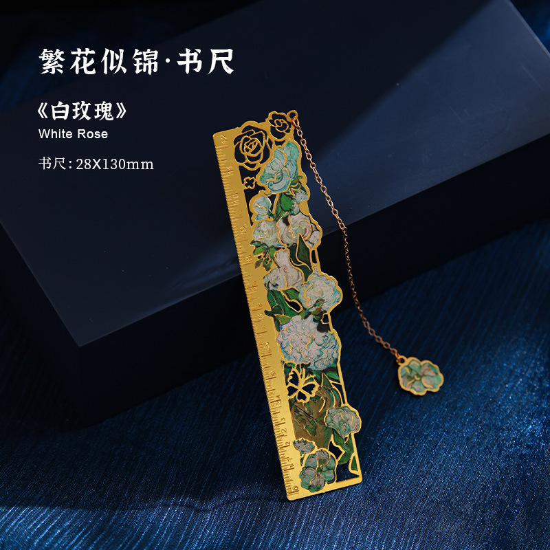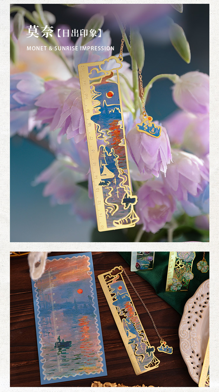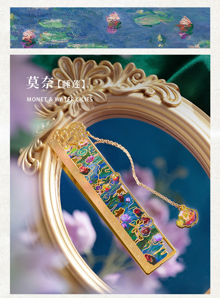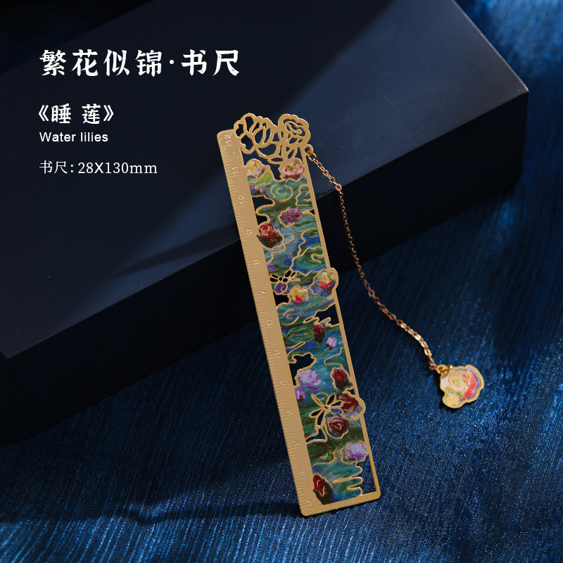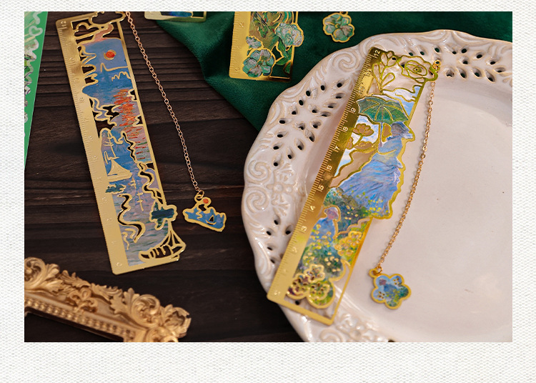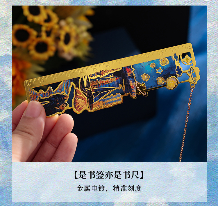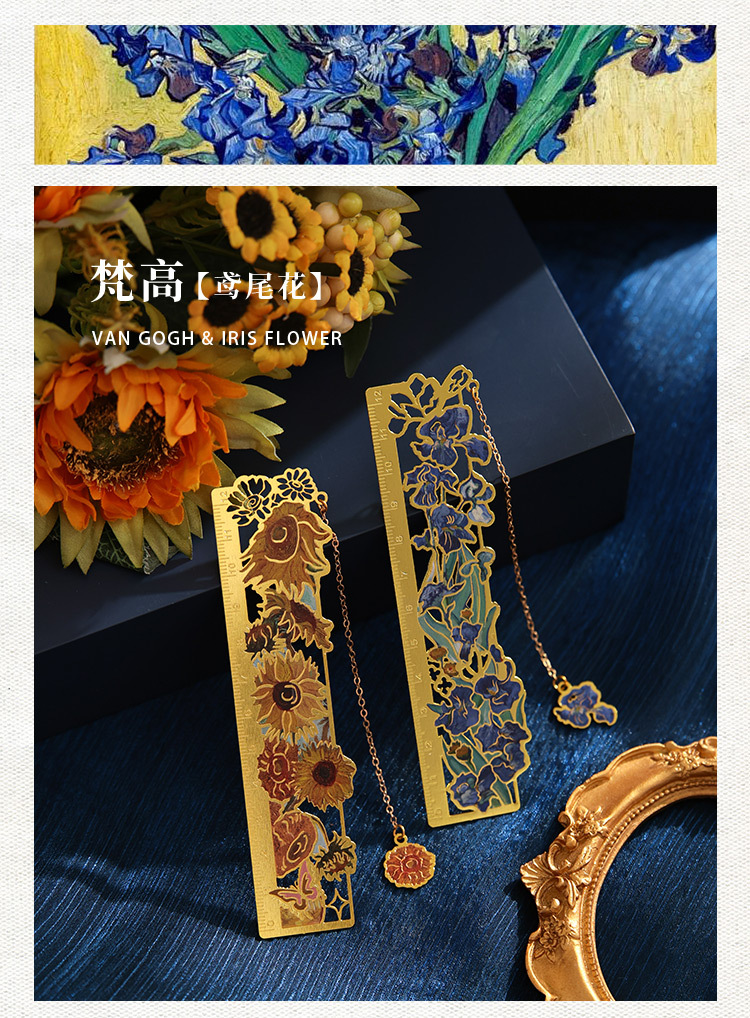 梵高莫奈繁花刻度尺书签金属镂空创意刻字礼品礼物中国风文创书签