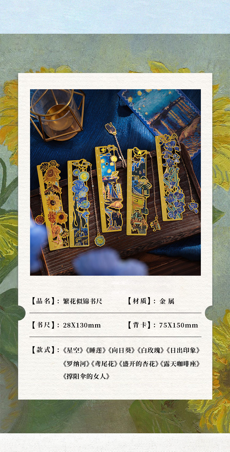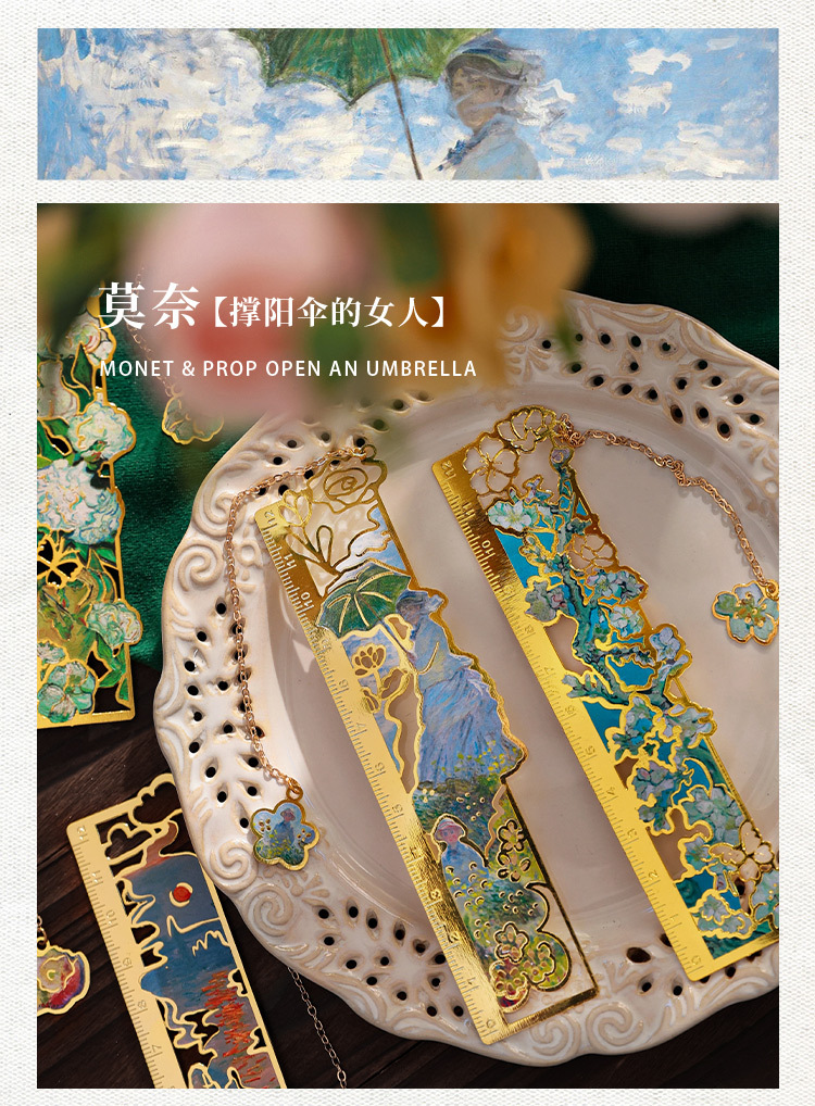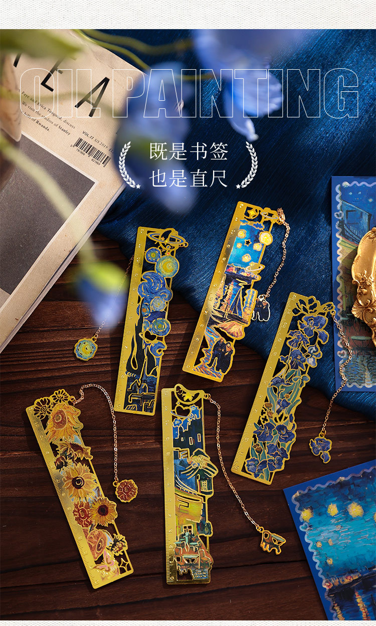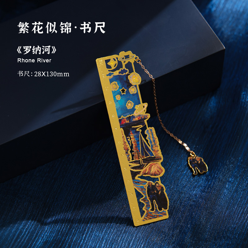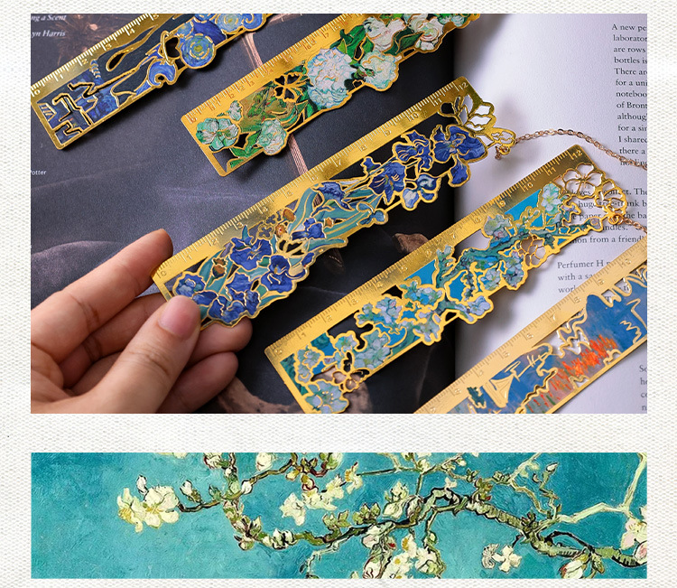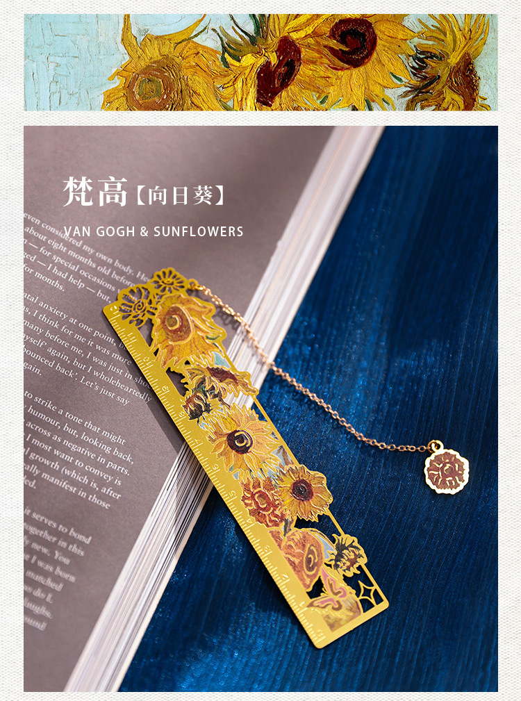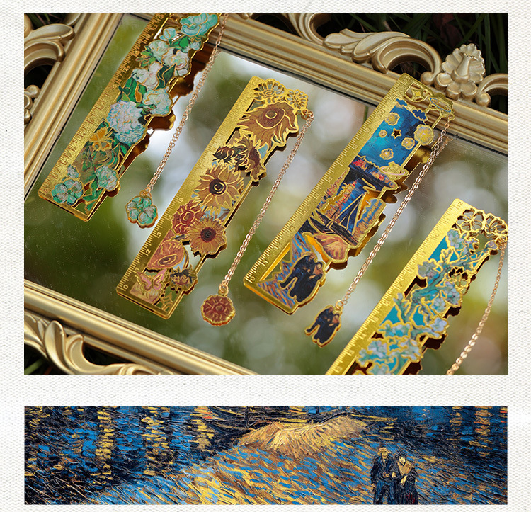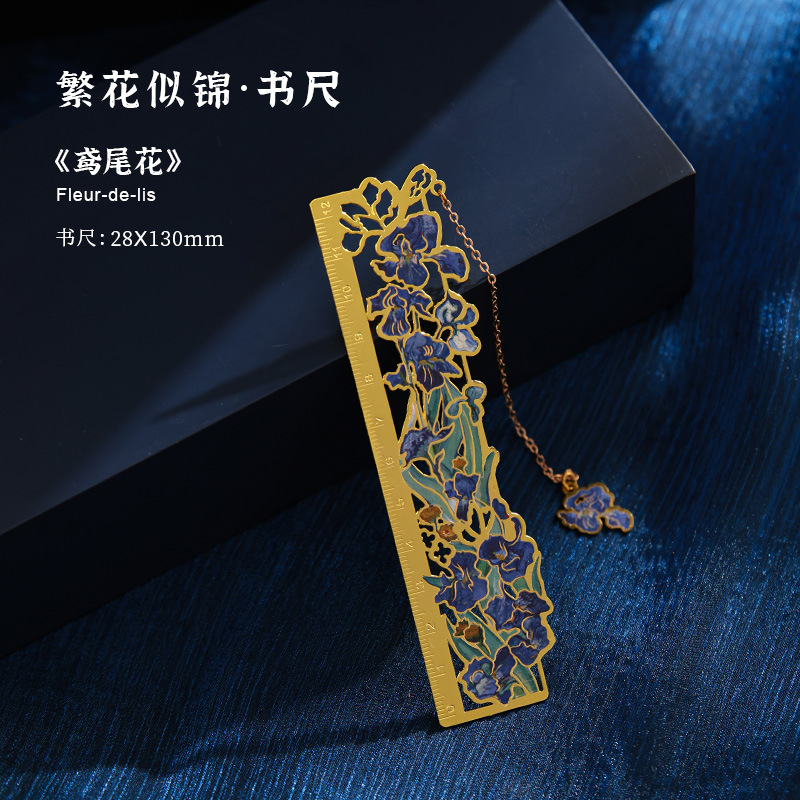 梵高莫奈繁花刻度尺书签金属镂空创意刻字礼品礼物中国风文创书签
