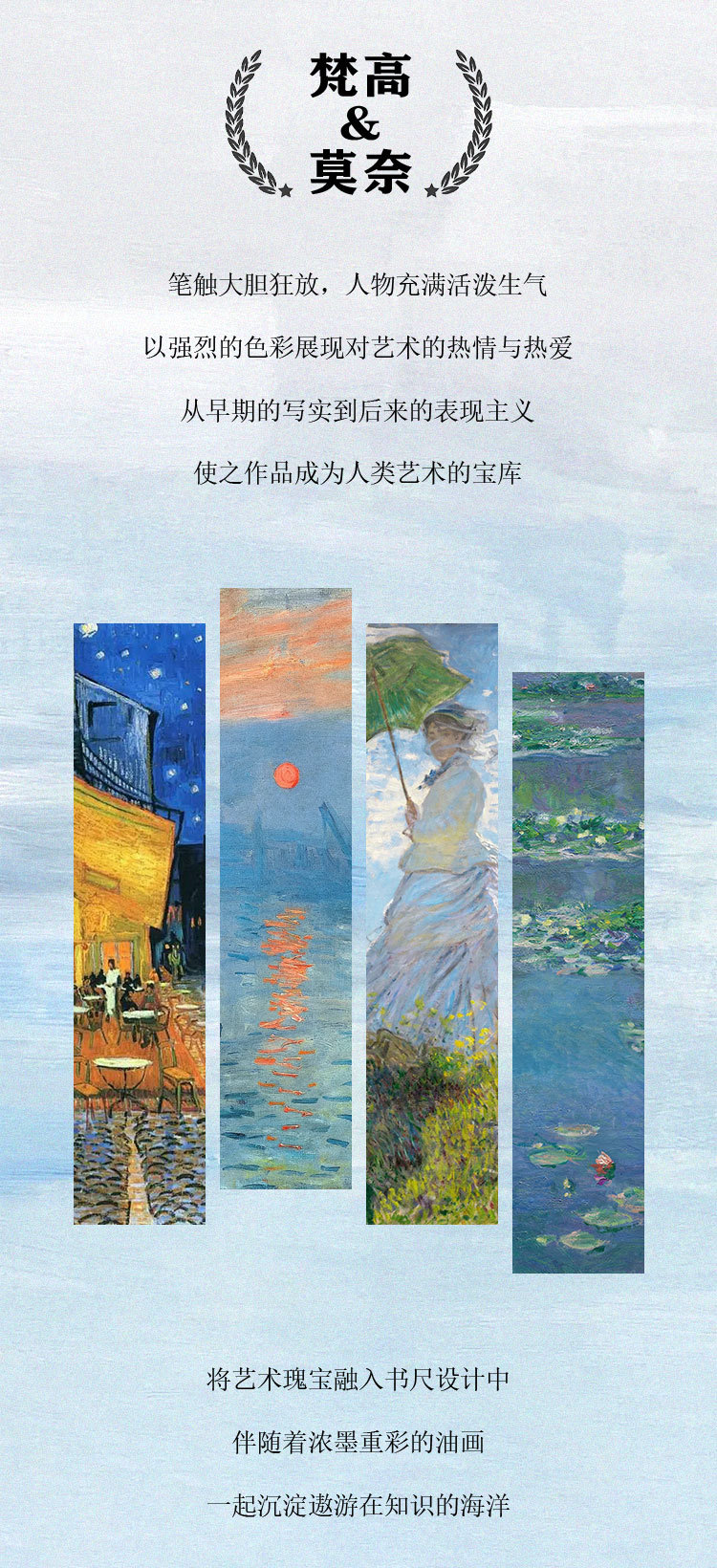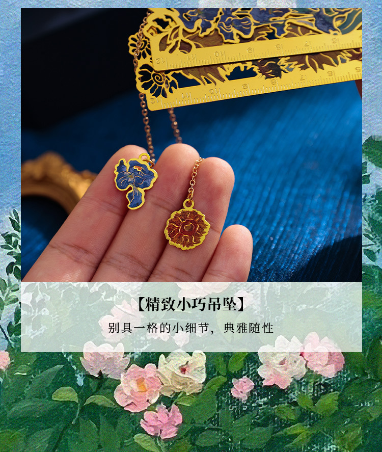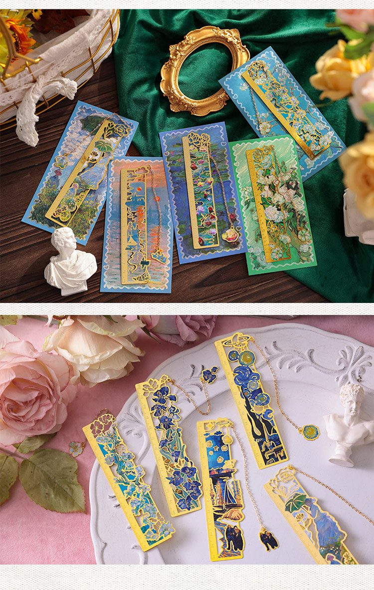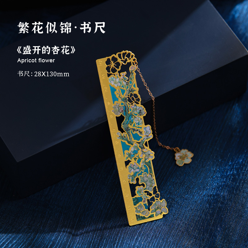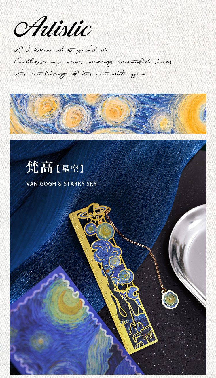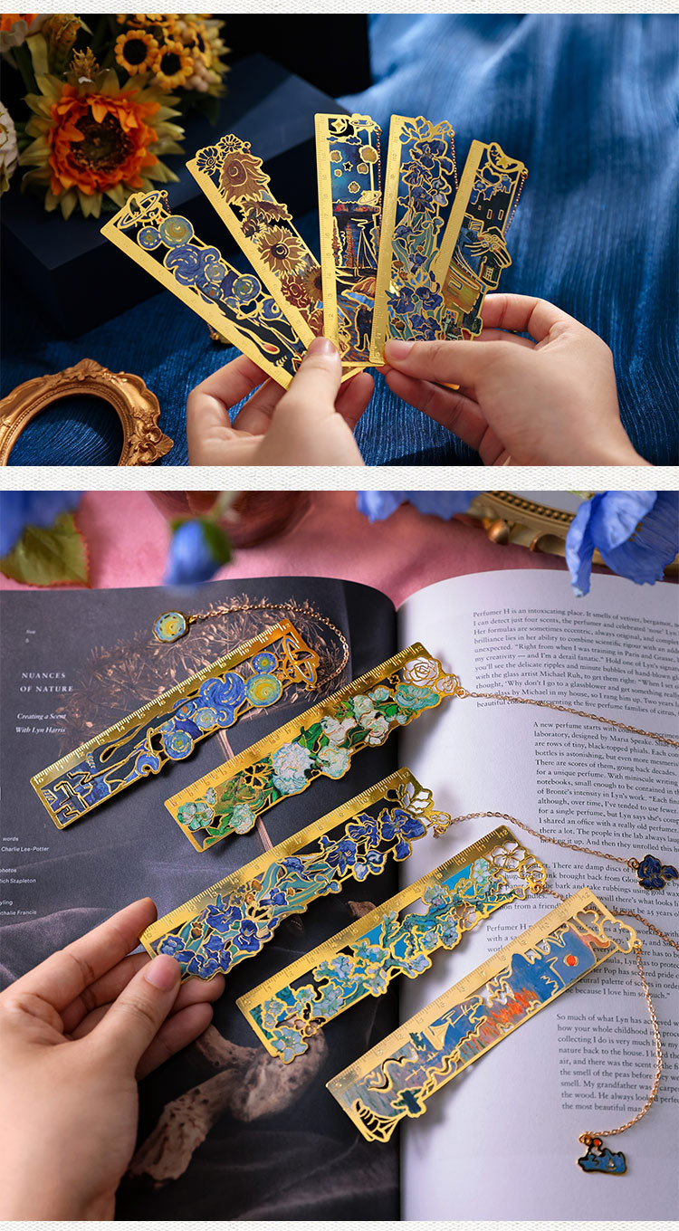 梵高莫奈繁花刻度尺书签金属镂空创意刻字礼品礼物中国风文创书签