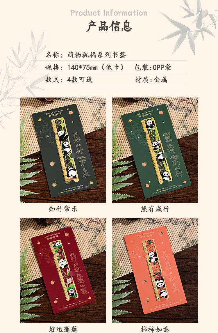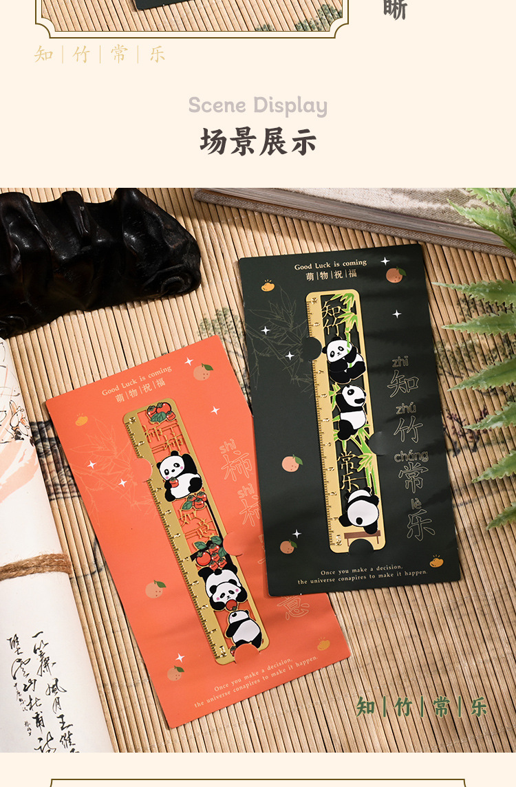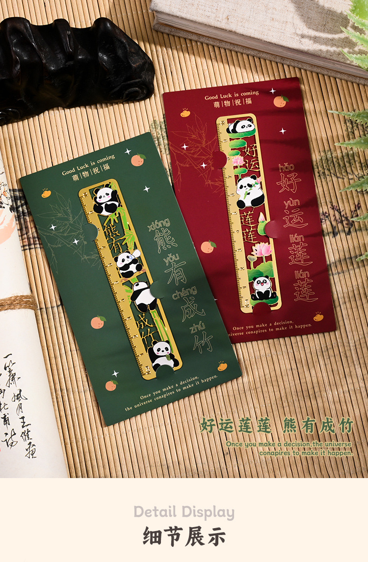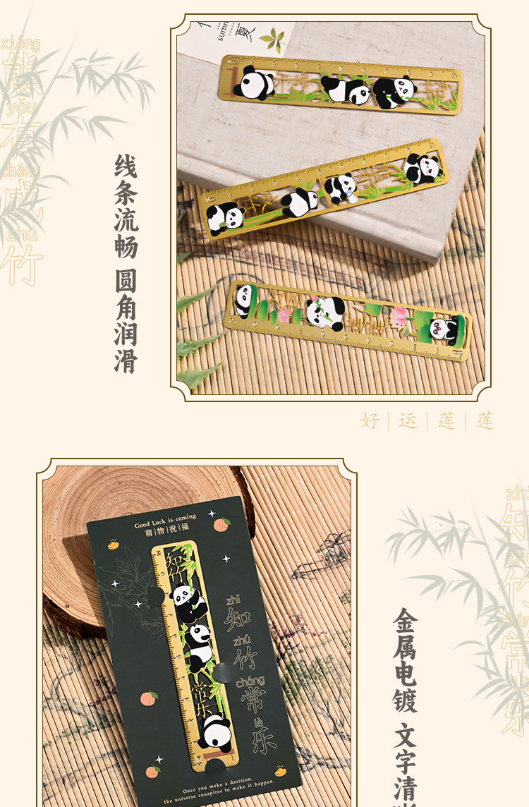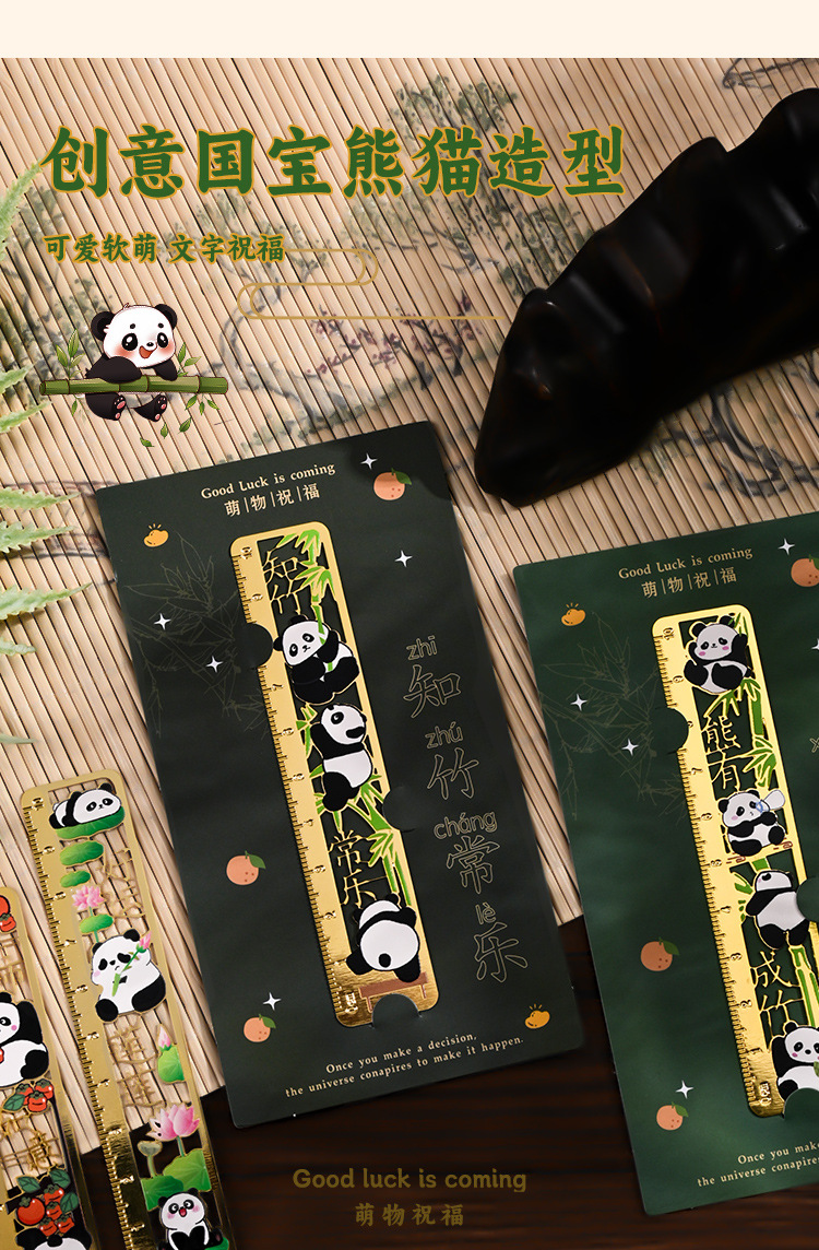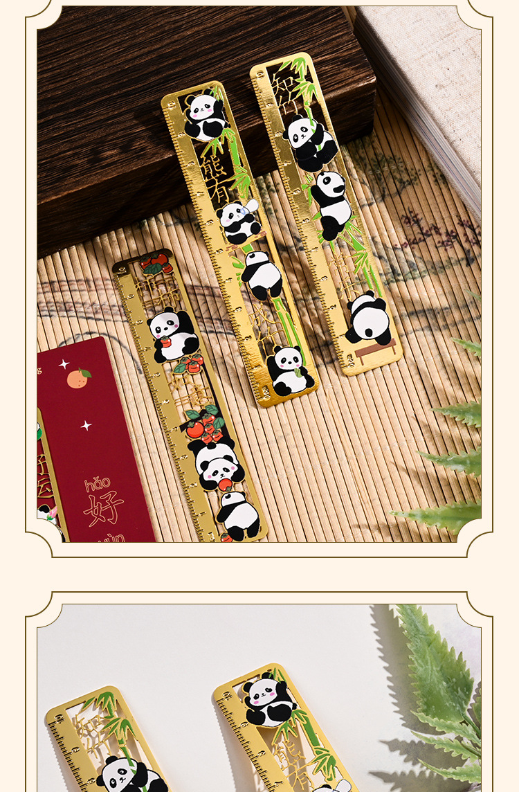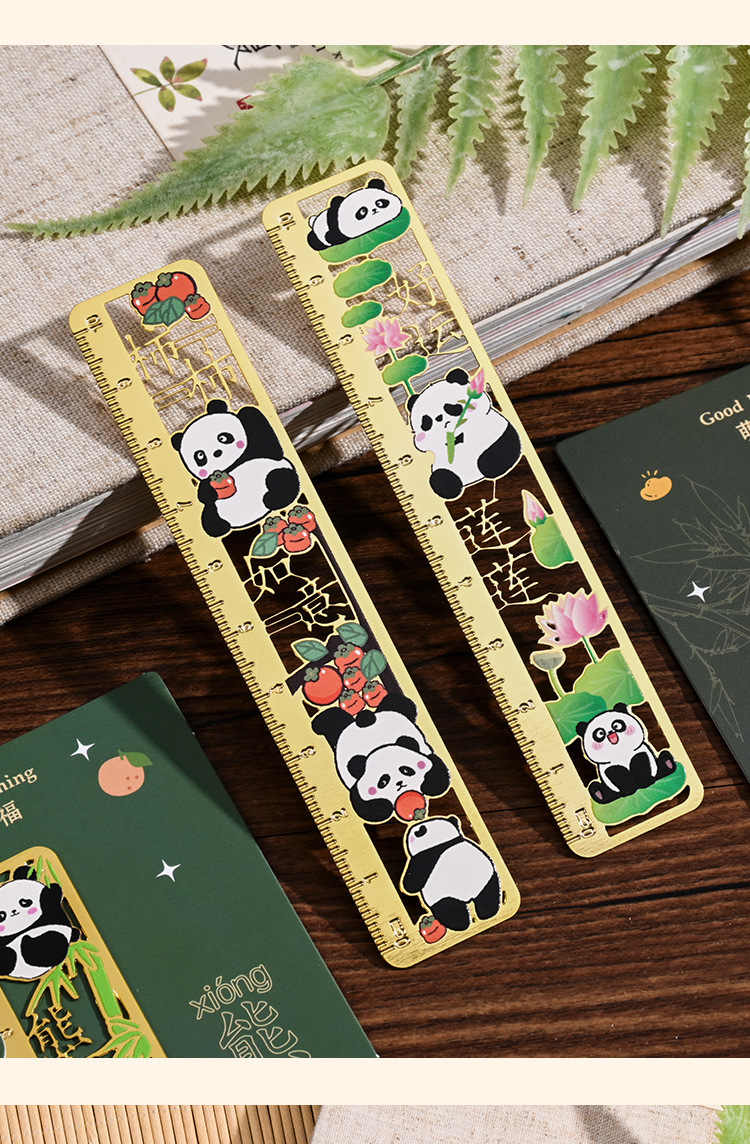 熊猫书签古典中国风金属黄铜尺子书签高档精致小学生奖励开学礼物