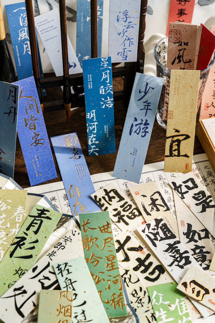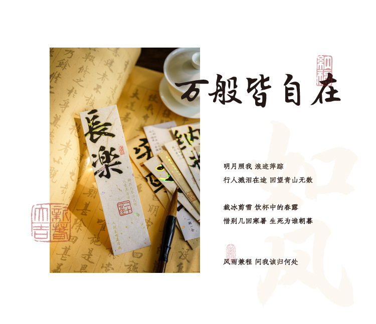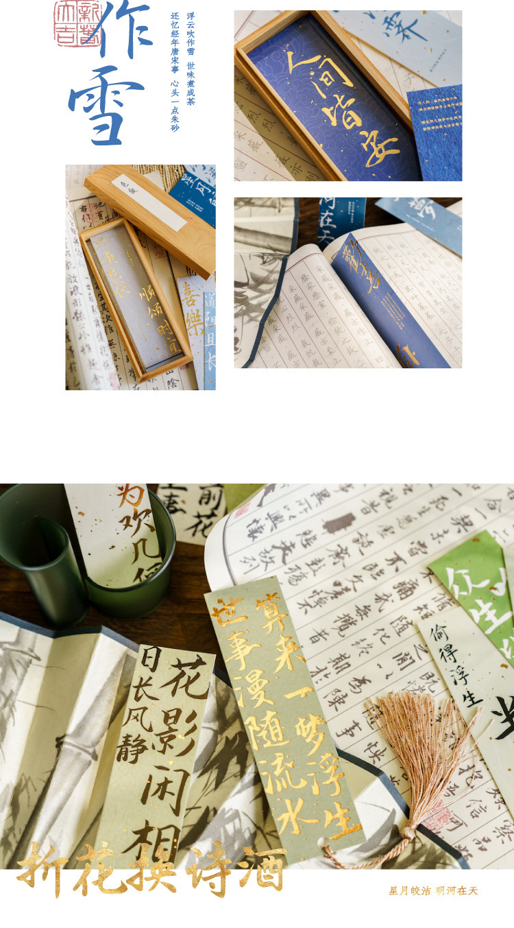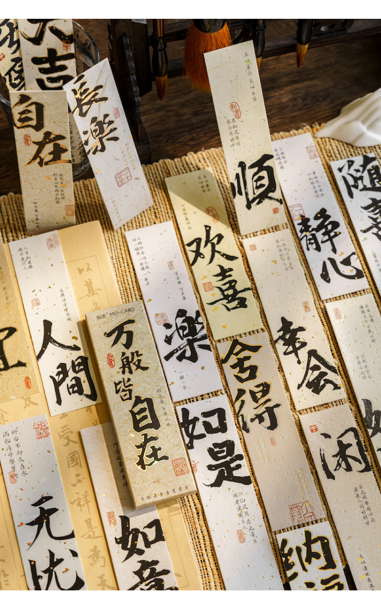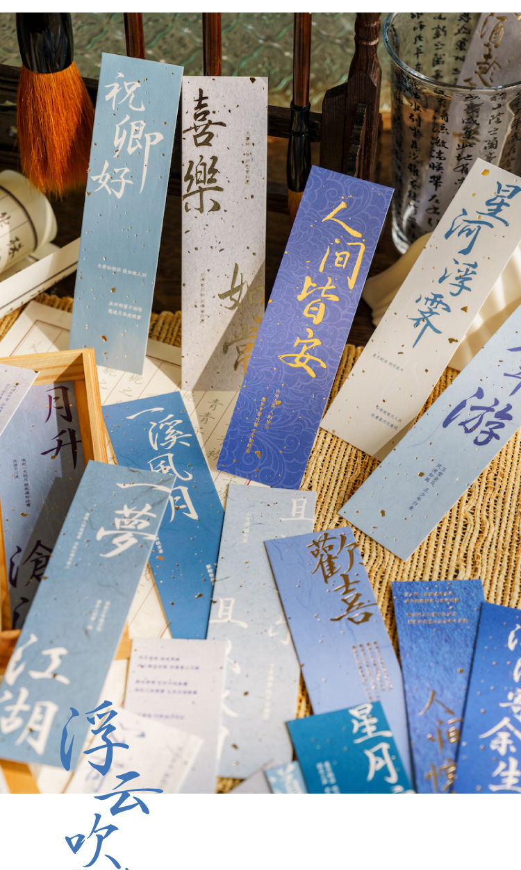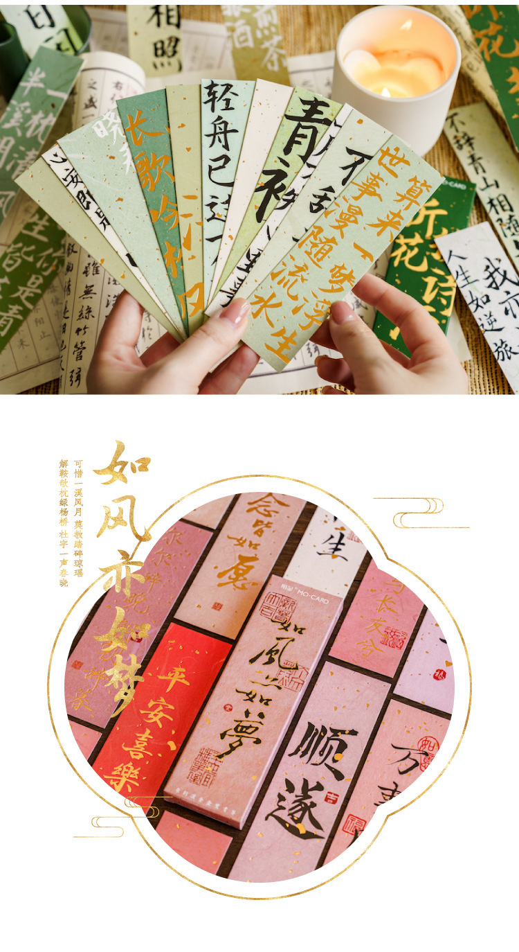 陌墨笔墨丹青客系列盒装书签古风书法古诗祝福烫金文字阅读标注卡